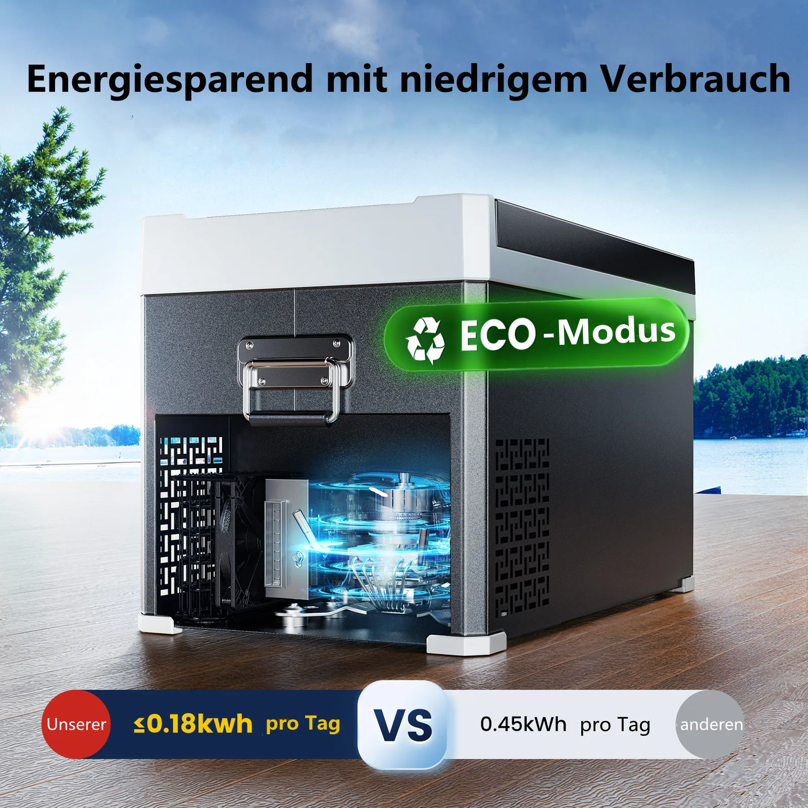 ЭКО-режим потребляет всего 0,18 кВтч/день.Его можно использовать как в автомобиле (12 В/24 В постоянного тока), так и дома (100–240 В переменного тока).Вы даже можете использовать его на открытом воздухе с солнечными панелями и портативными блоками питания, что идеально подходит для кемпинга, пикников, поездок на колесиках и поездок, чтобы предоставить вам свежую еду и охлаждающие напитки.