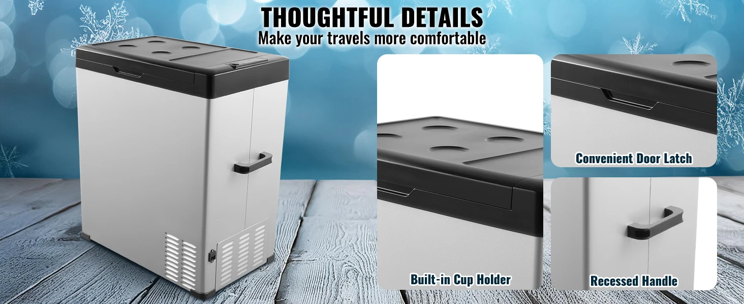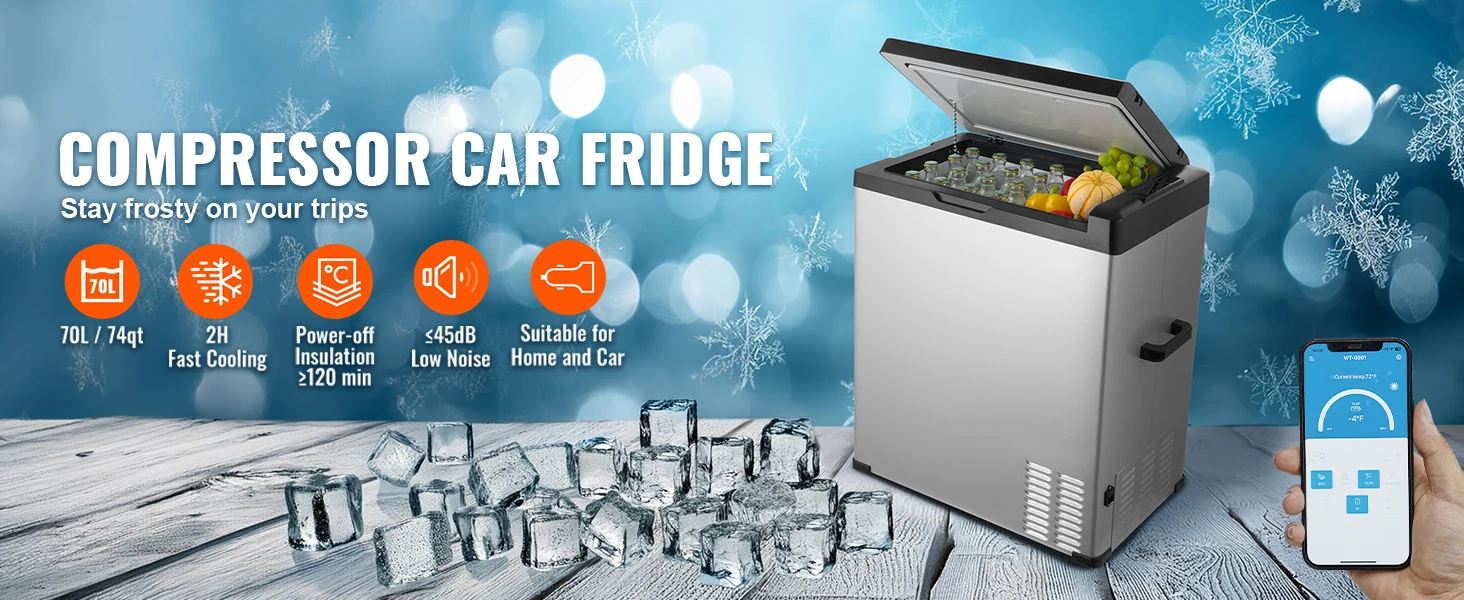 Портативный автомобильный холодильник объемом 70 л с модернизированным компрессором для быстрого охлаждения в течение 100 минут.Эффективно работает при высоких или низких температурах от 16 лет.℃~38℃ / 60.8℉~100.4℉, идеально подходит для путешествий и кемпинга.
