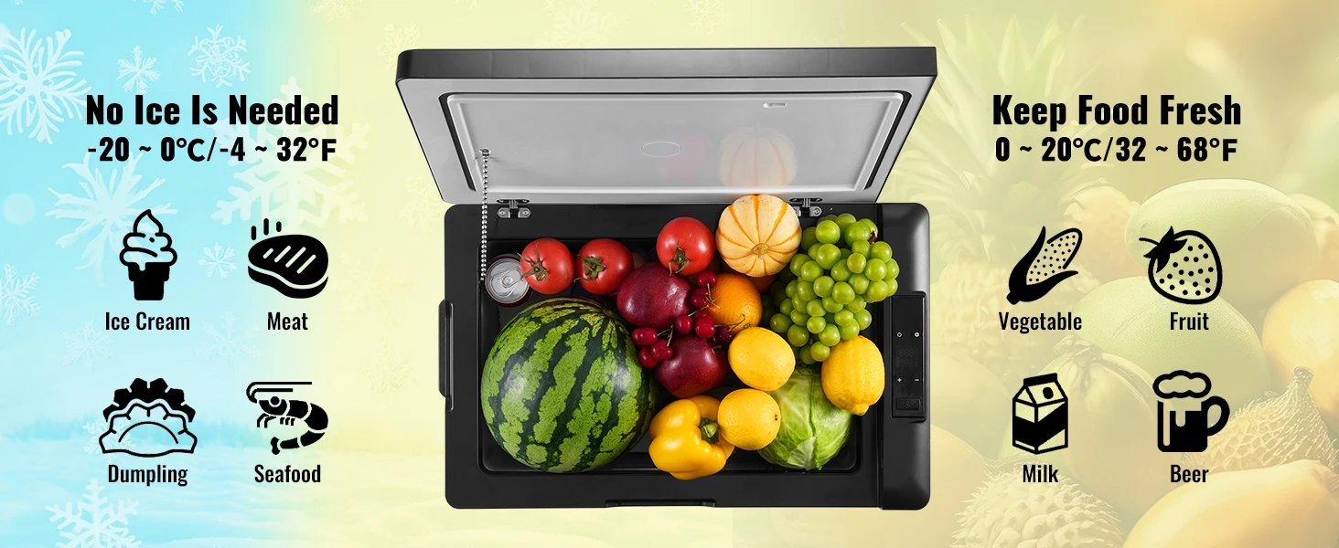 Регулируемый температурный диапазон -20℃ до 20℃ / -4℉ до 68℉, идеально подходит для хранения напитков, фруктов, мяса и мороженого.