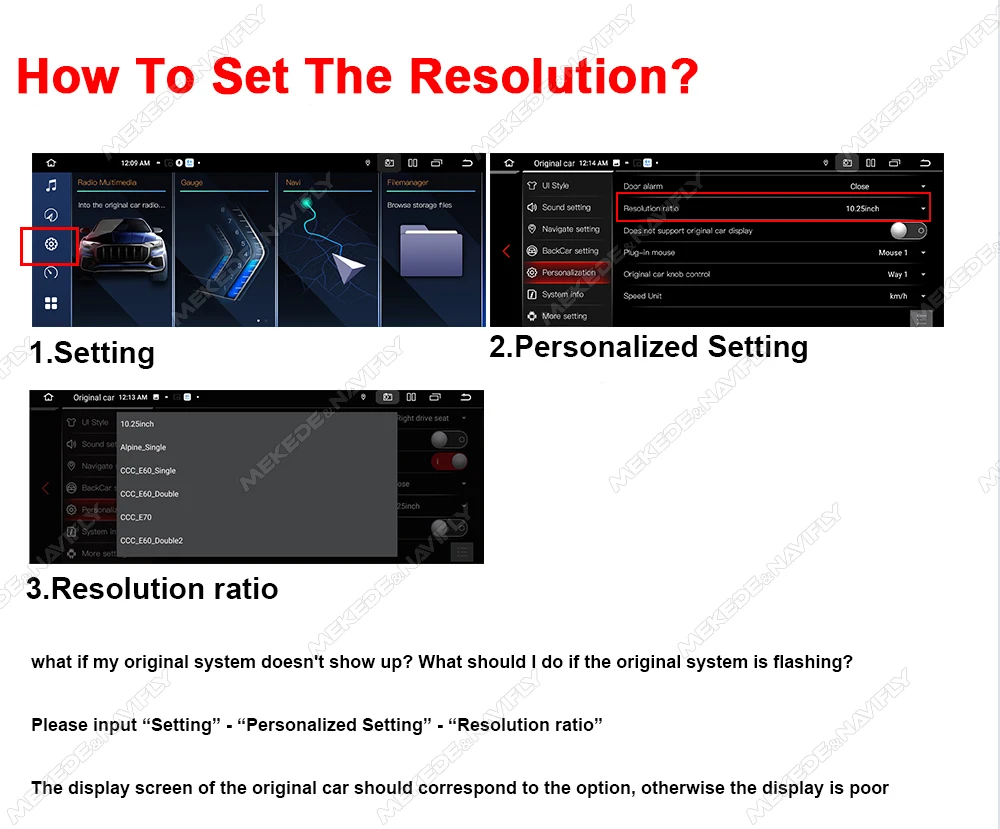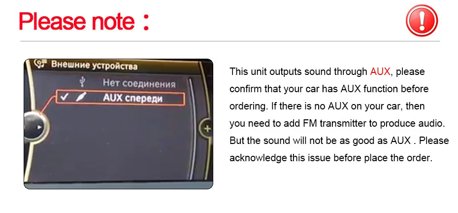 2. Необходимо подключить «AUX» и переключить режим на «AUX».1. Что делать, если моя оригинальная система не отображается?