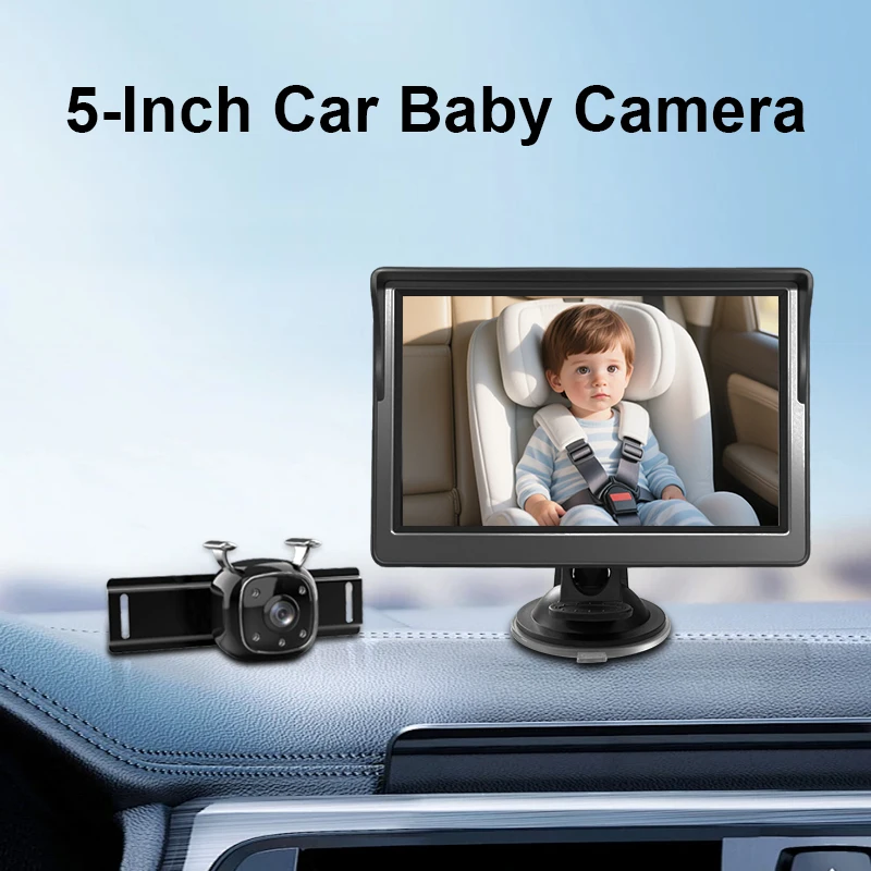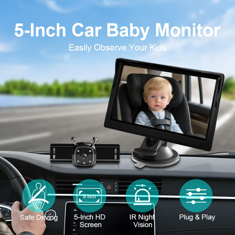 Автомобильная радионяня, вид младенца на заднем сиденье, камера ночного видения с 5-дюймовым экраном, детское автомобильное зеркало для малышей