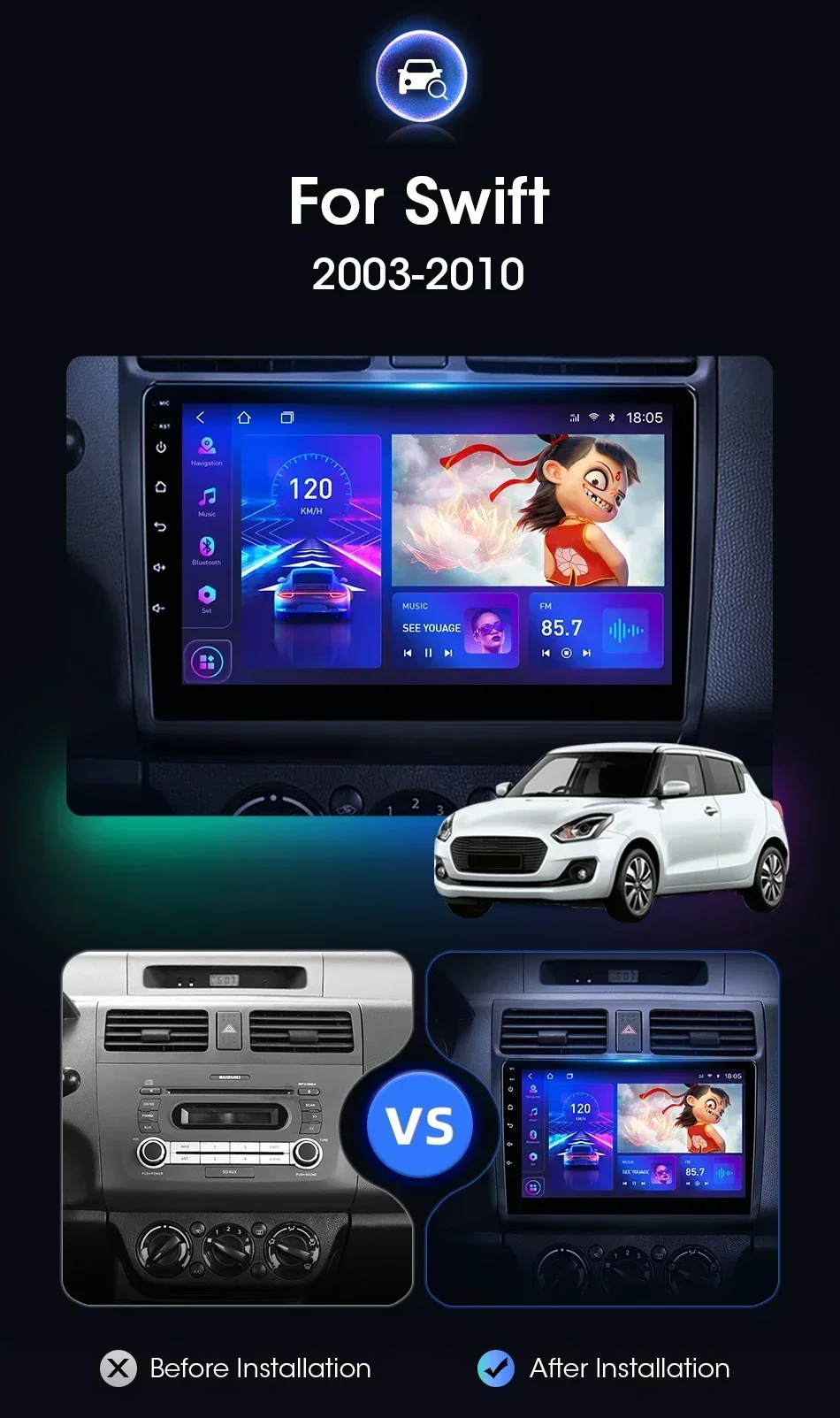 Автомобильный радиоприемник Android 2 Din, беспроводной Carplay для Suzuki Swift 2003-2010, мультимедийный плеер, стереонавигация, головное устройство, авто аудио