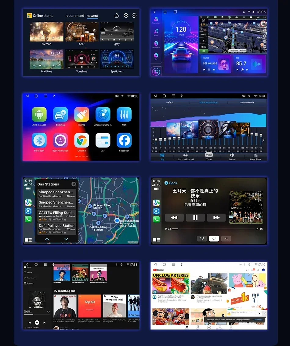 Разделенный экран и плавающий экран отображают два приложения одновременно, видеовыход высокой четкости, больше настроек воспроизведения плавающего экрана, что позволяет вам получить больше удовольствия от вождения.