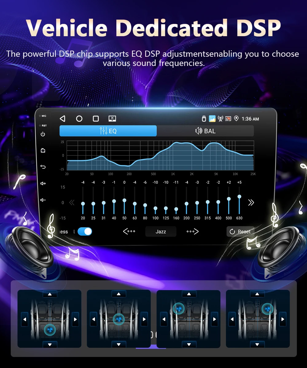 ● AI DSP: Восемь основных звуковых эффектов, предназначенных для автомобильных сцен, создают непревзойденные впечатления от слуха, такие как оптимизация 3D, панорама 5.1, сцена HiFi и т. д., которые могут поддерживать более 10 миллионов моделей автомобилей.(Дополнительная активация)