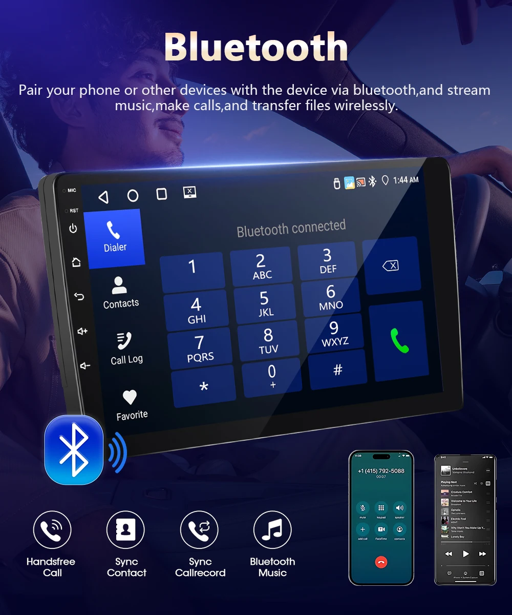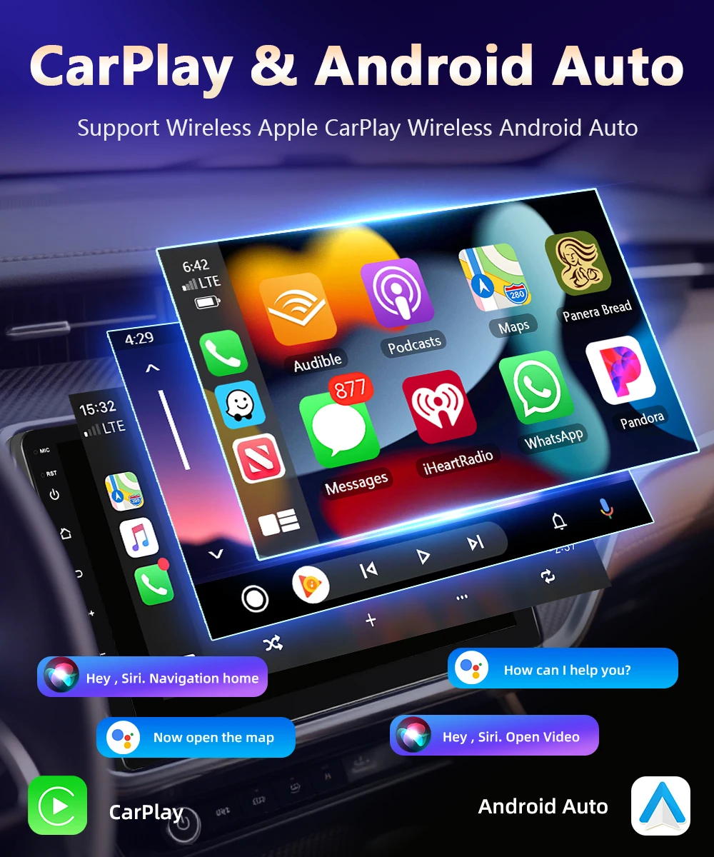 ●Беспроводная связь Carplay и беспроводная авто: используйте свой iPhone или телефон Android по беспроводной сети с устройством и управляйте приложениями на своем телефоне.Вы можете совершать звонки, отправлять сообщения, воспроизводить музыку, перемещаться и многое другое с помощью голоса или касания.