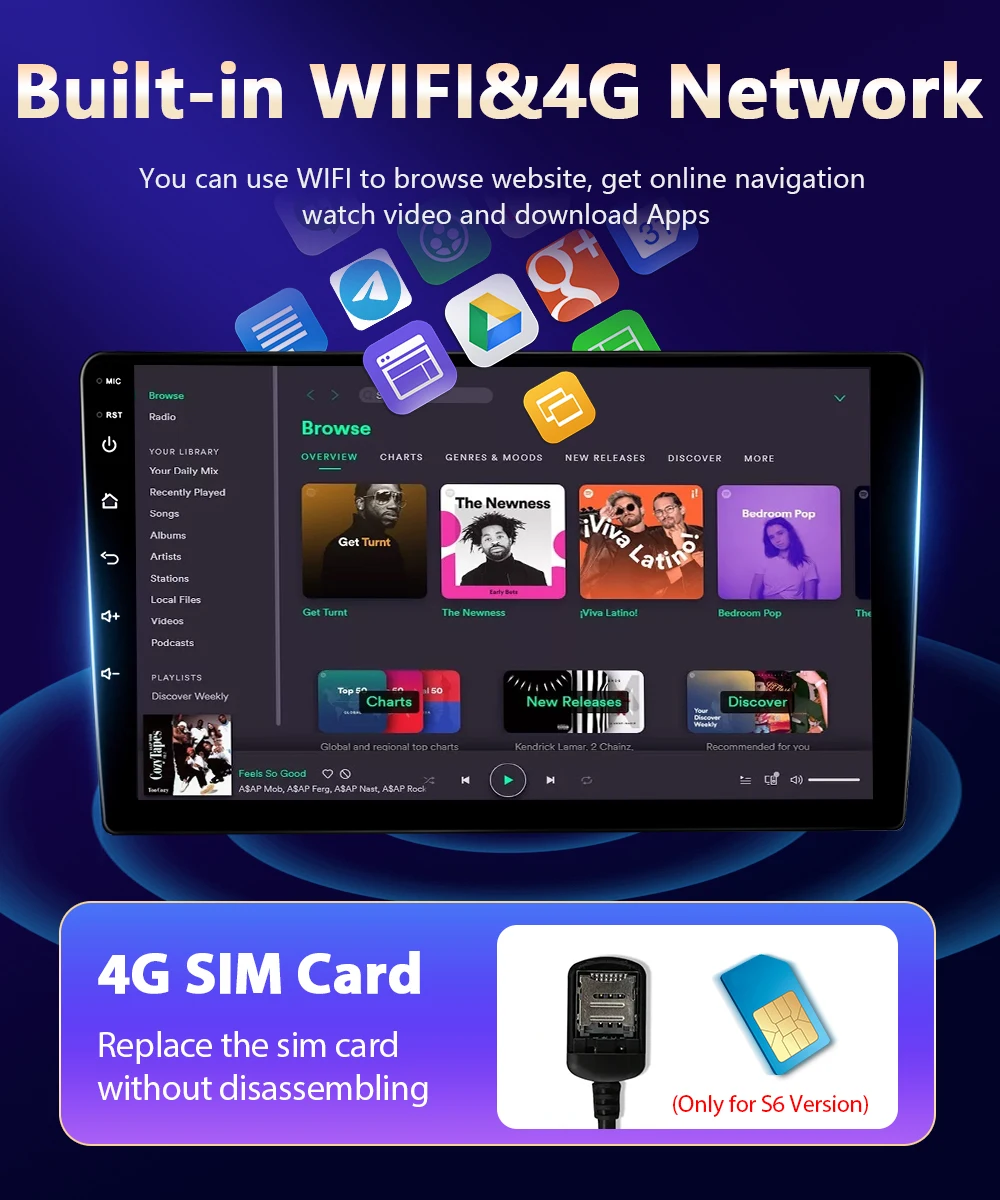 ●Система Android: наслаждайтесь новейшей и совершенной операционной системой вашего автомобильного устройства с быстрой производительностью, плавным интерфейсом и доступом к миллионам приложений.