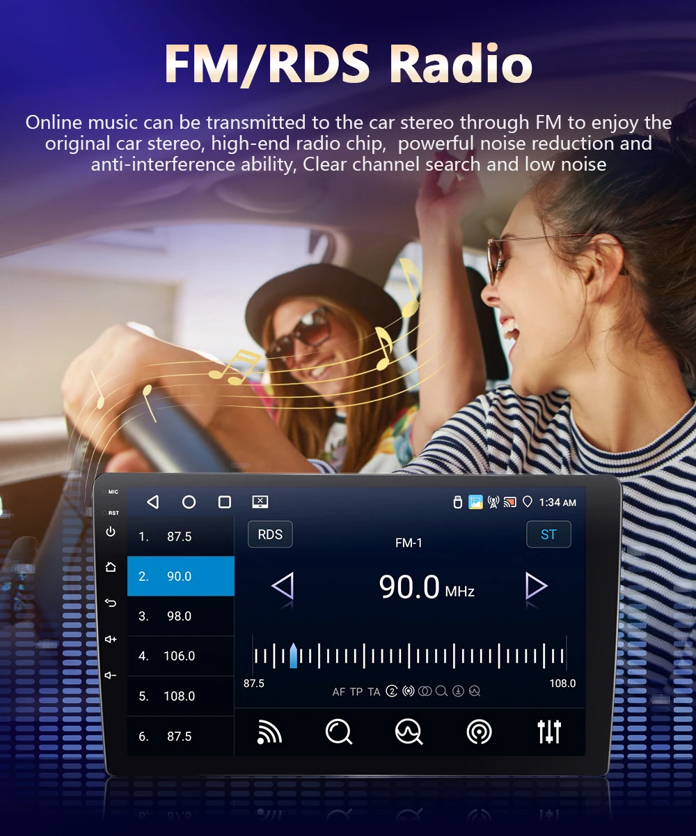 ●FM/RDS-радио: получайте радиосигналы от различных станций с чистым звуком и качеством.Слушайте музыку, информационные бюллетени и информацию о дорожном движении в любое время.