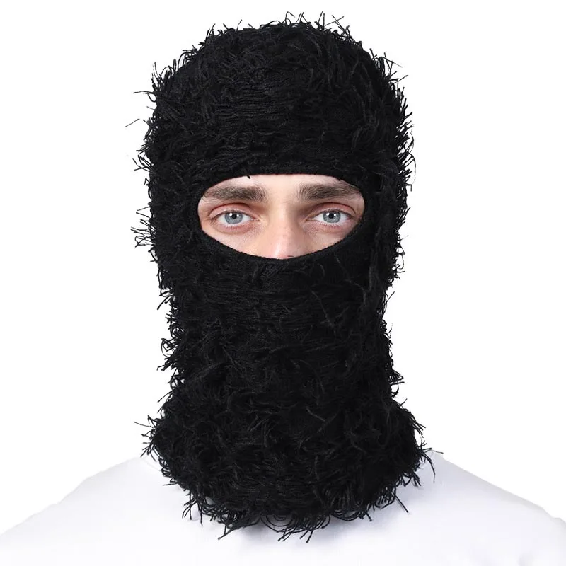 Балаклава, потертая вязаная лыжная маска на все лицо для мужчин и женщин, шапки-бини, камуфляжные зимние теплые шапки с капюшоном, ветрозащитные шапки