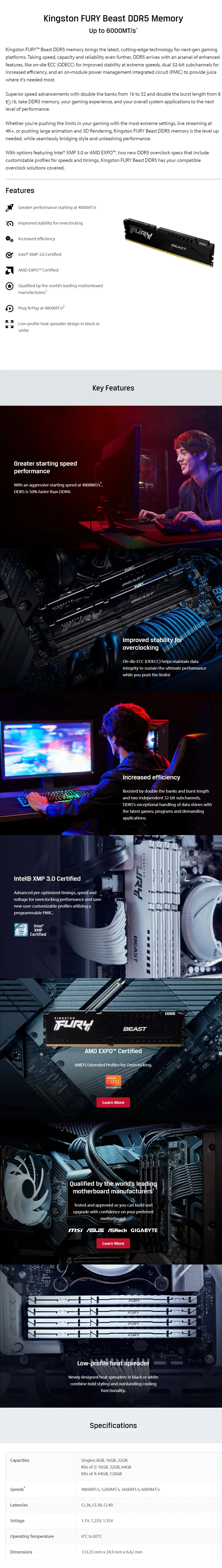 Beast DDR5 XMP 8 16 32 ГБ 4800 5200 5600 6000 МГц Настольная материнская плата AMD Intel CPU Оперативная память для ПК 288PIN с затемнением Металлический жилет дизайн