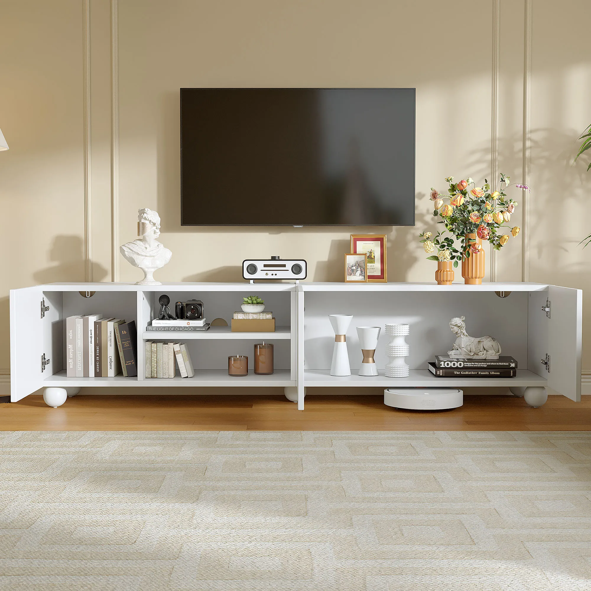 Белая подставка под телевизор 200 см для 80-дюймового телевизора, низкая панель с 3 печатными дверцами. Современная медиаконсоль с 5 прочными ножками, 200x40x44 см.