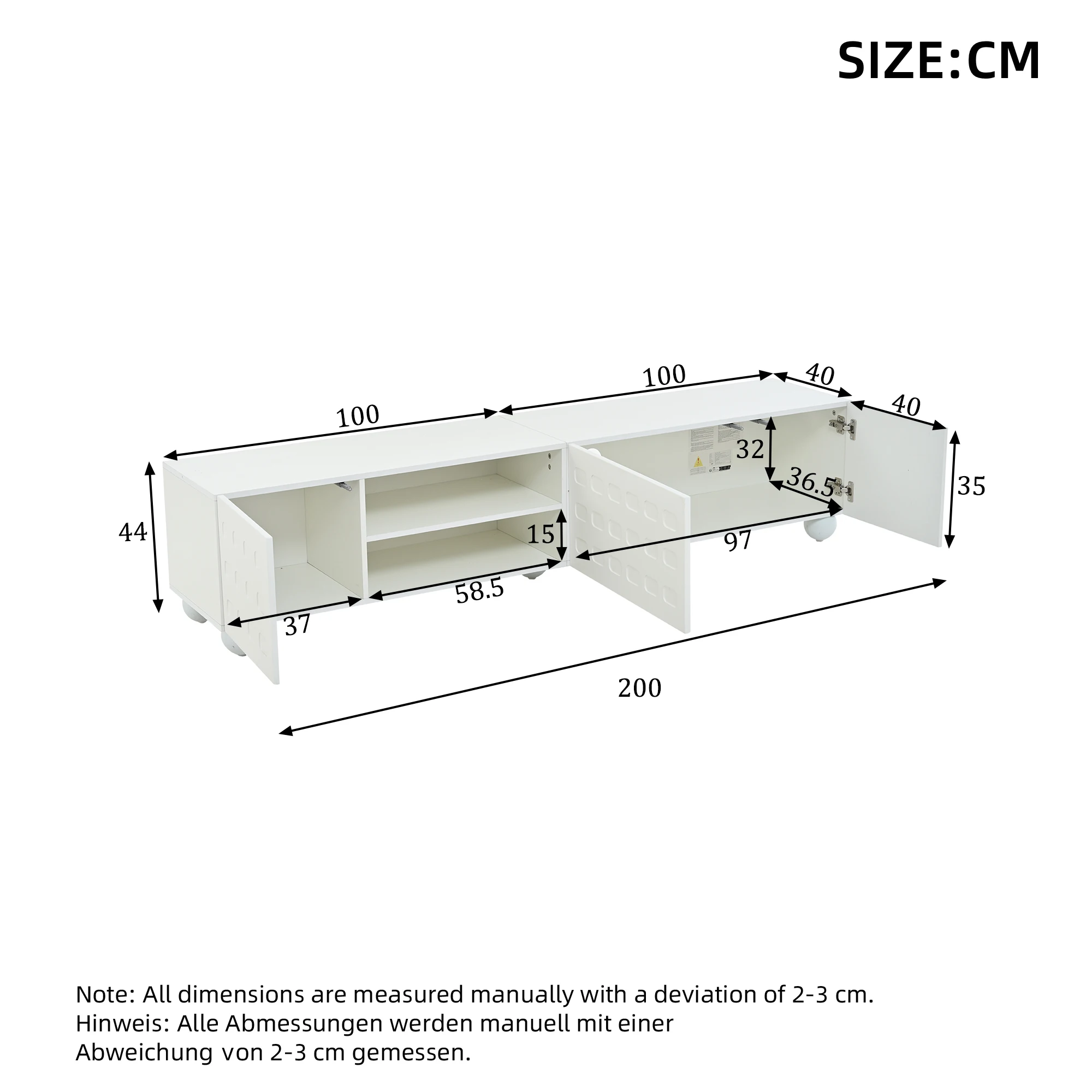 Название продукта:Шкаф для телевизора 200*40*44 см, 3-дверный шкаф для гостиной, дверцы гардероба с печатным дизайном, подставка для телевизора 200 см, низкая доска для шкафа для телевизора с 5 ножками, подходящая для телевизора с диагональю до 80 дюймов.Белый