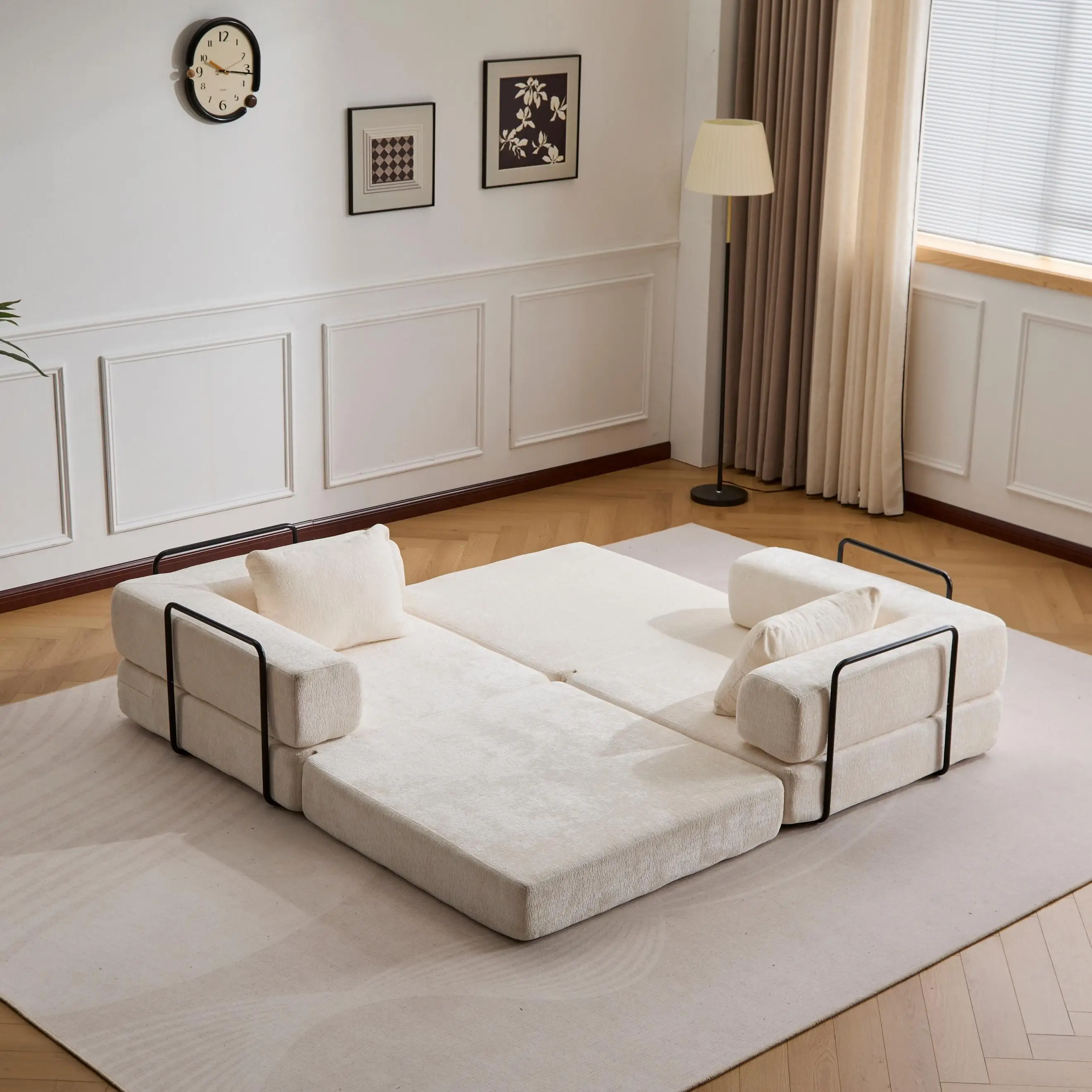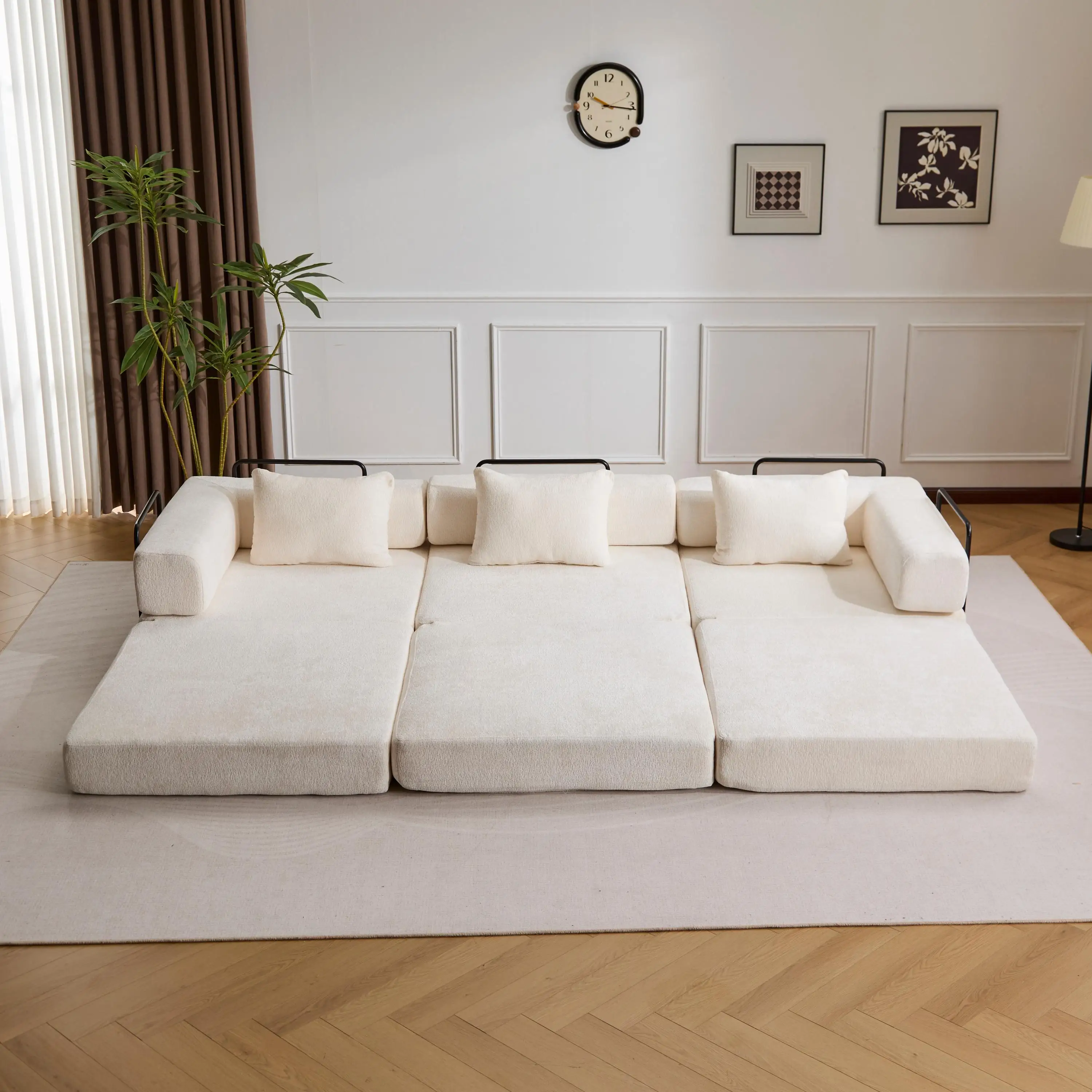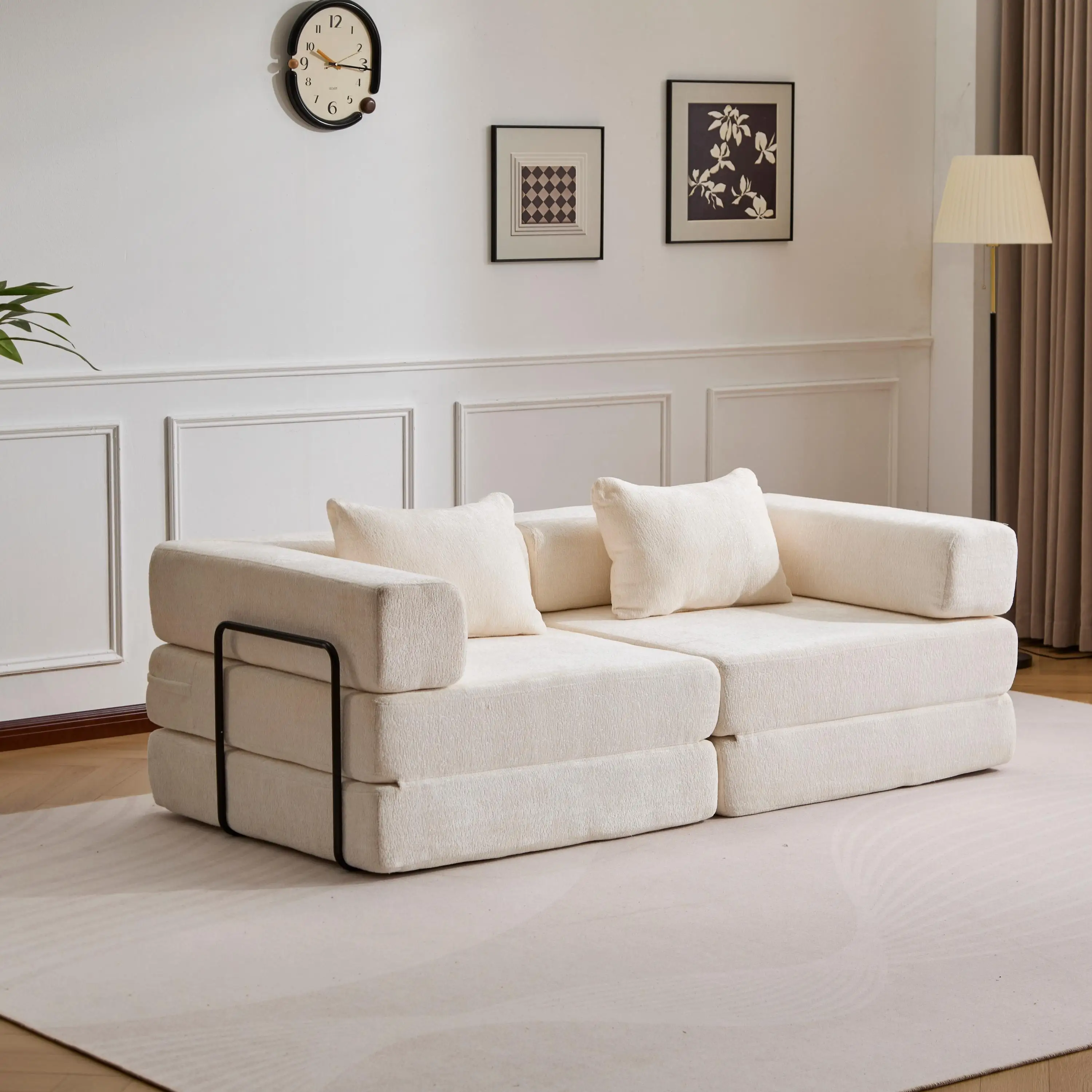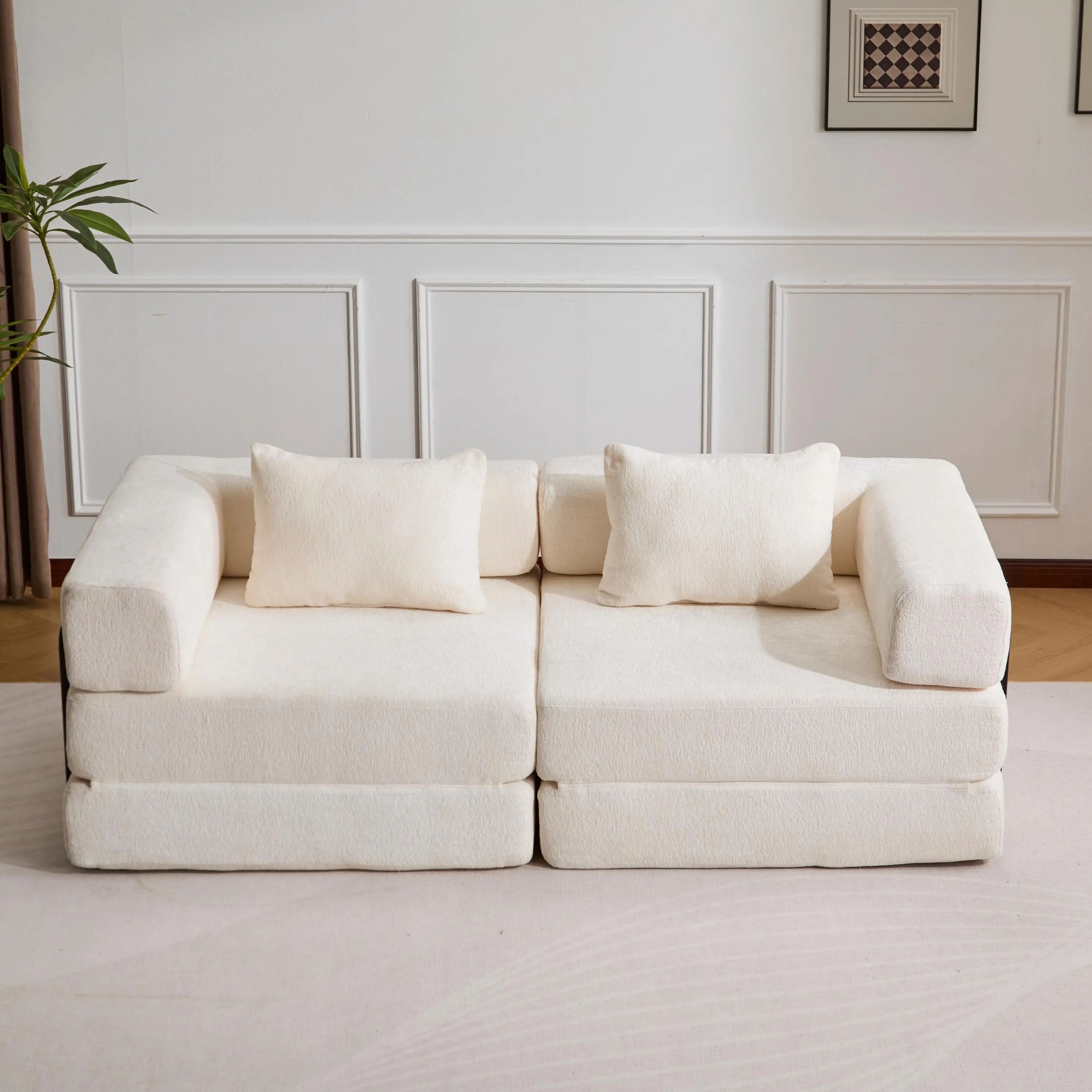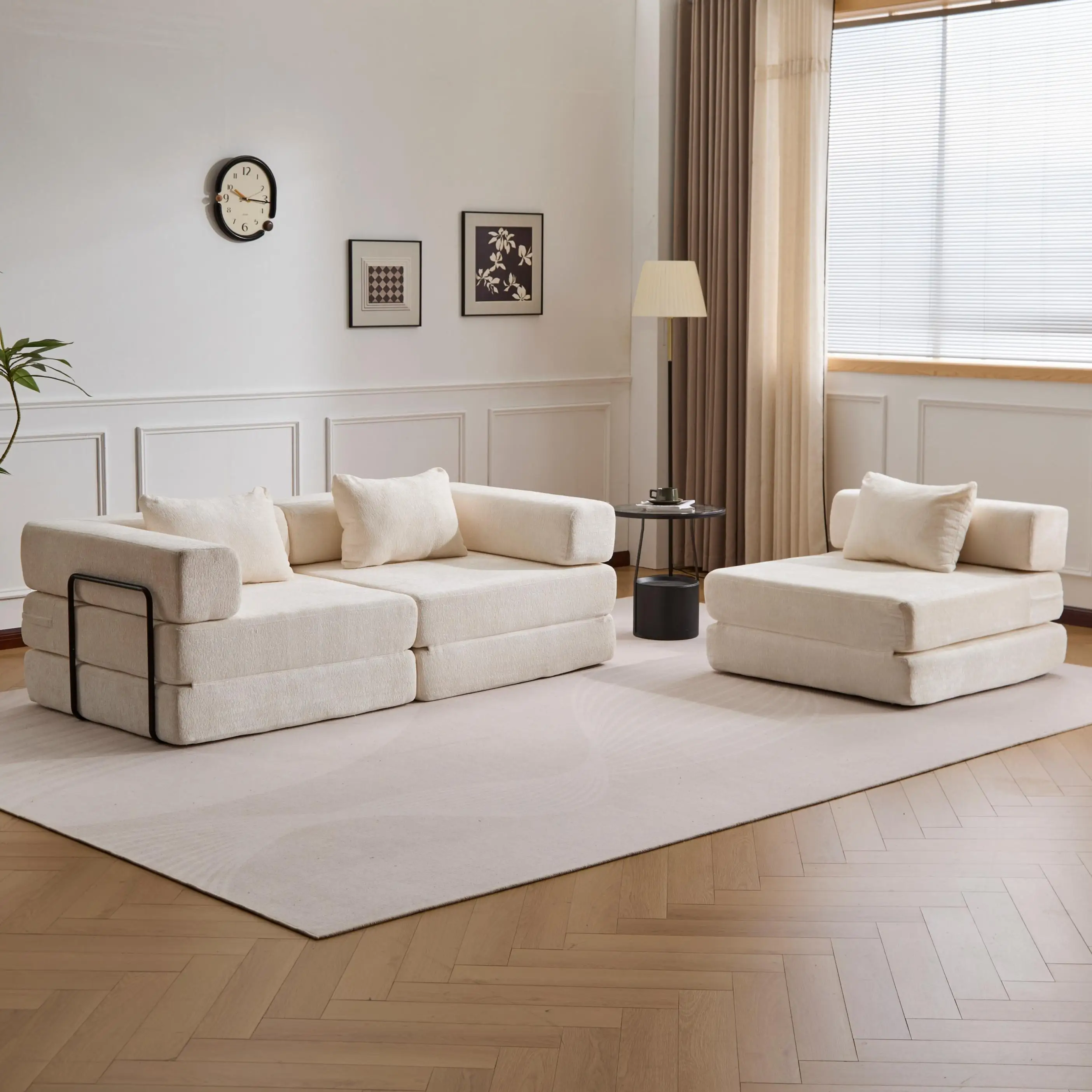 Белый диван-кровать из синели, раскладная гостевая кровать-кабриолет с подушками, 3-местный двухместный диван, модульный диван 3-в-1 для гостиной