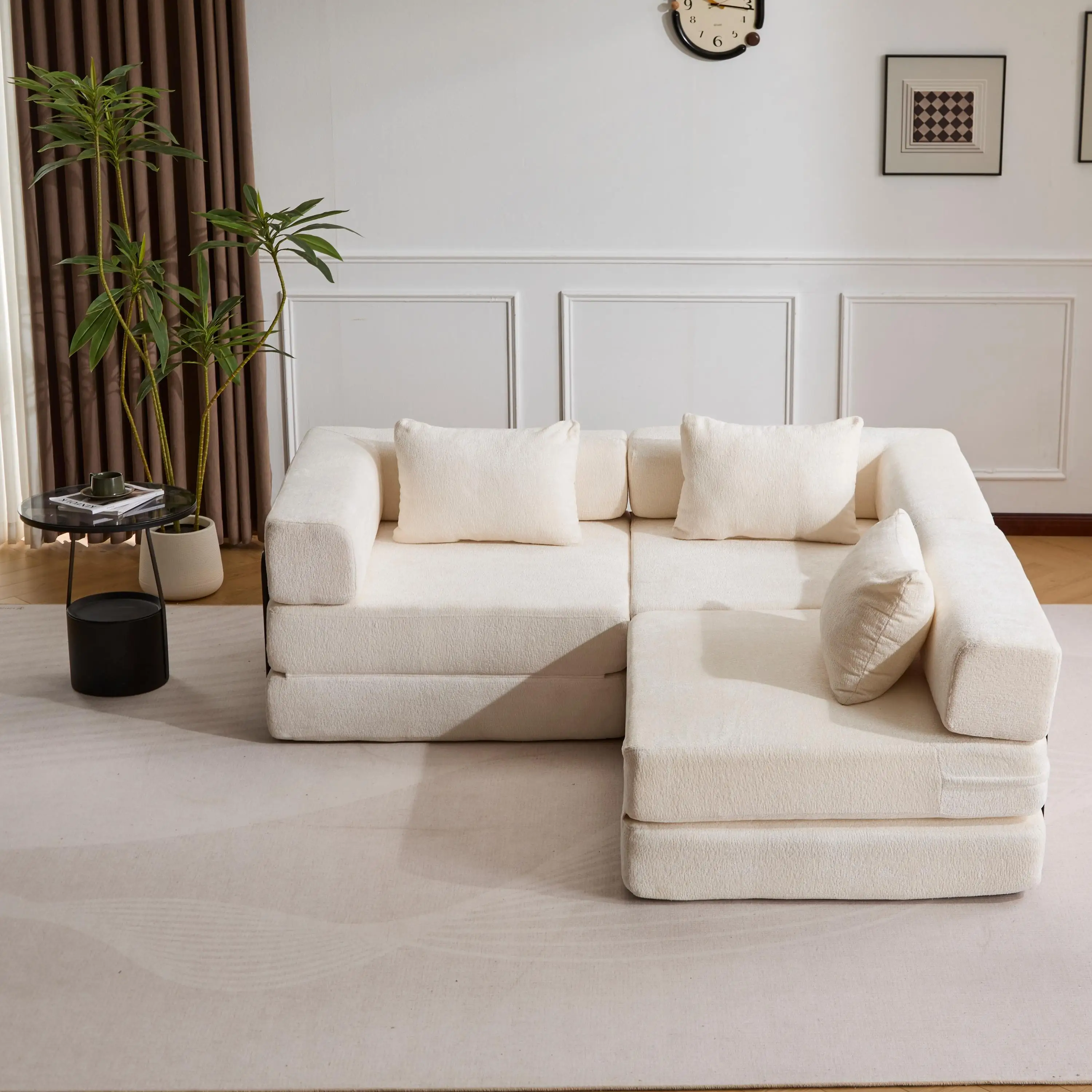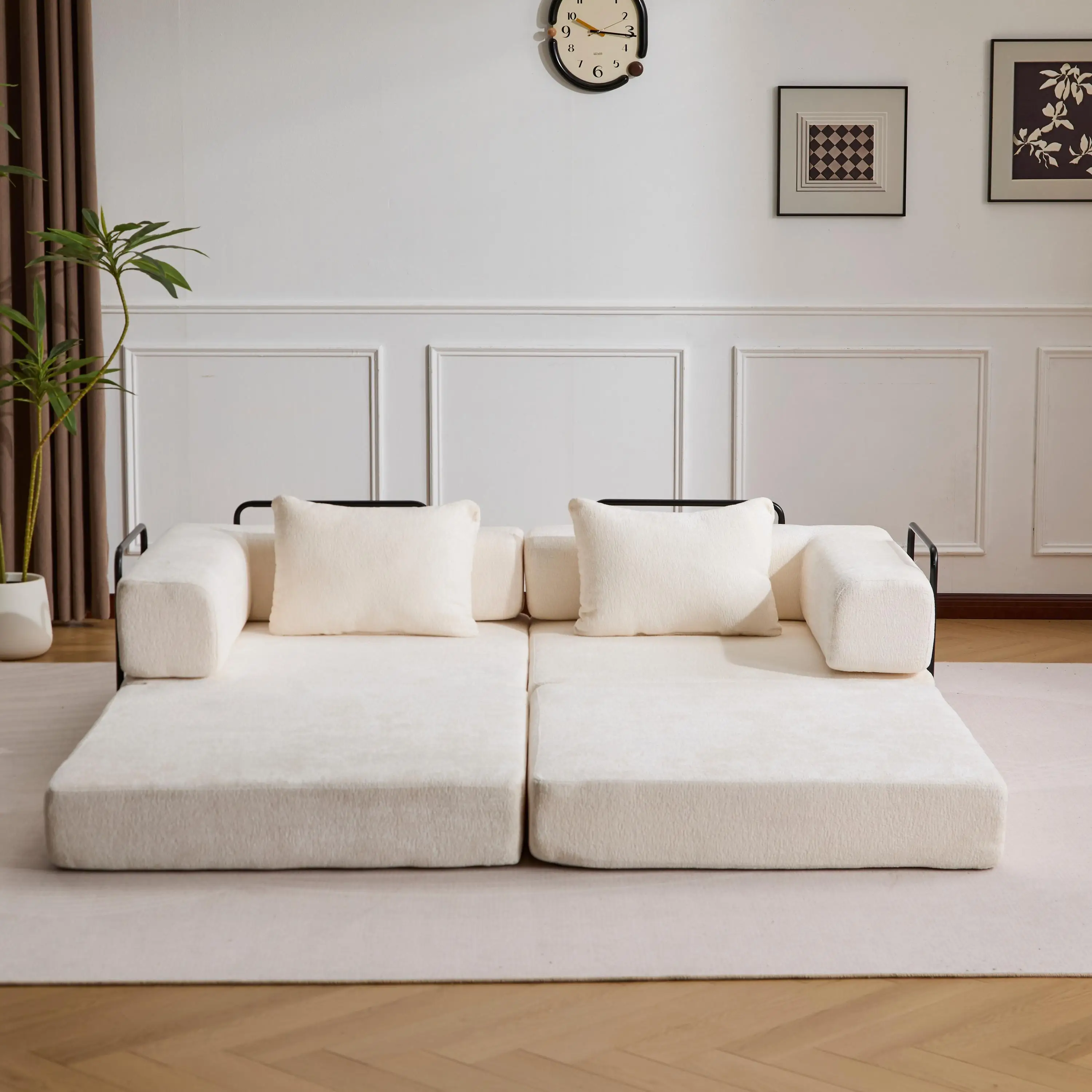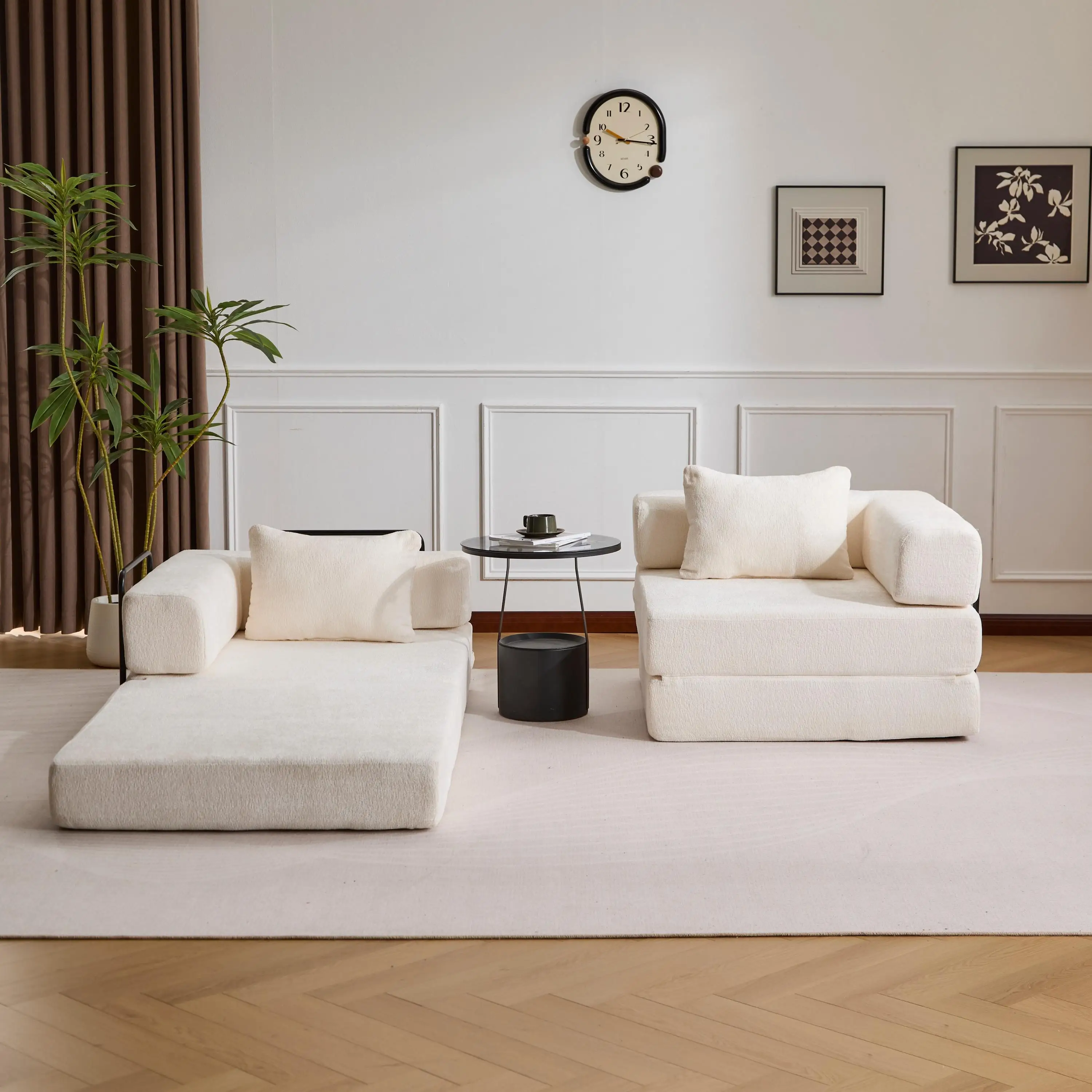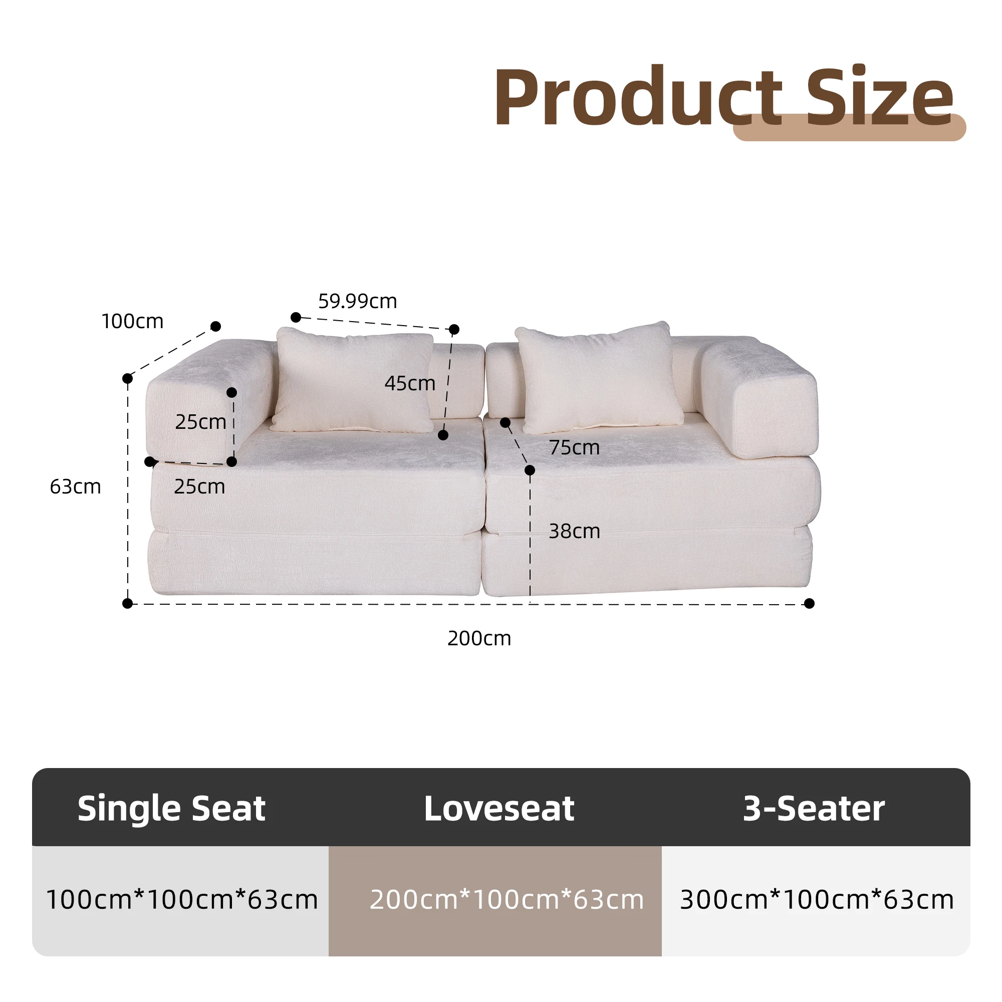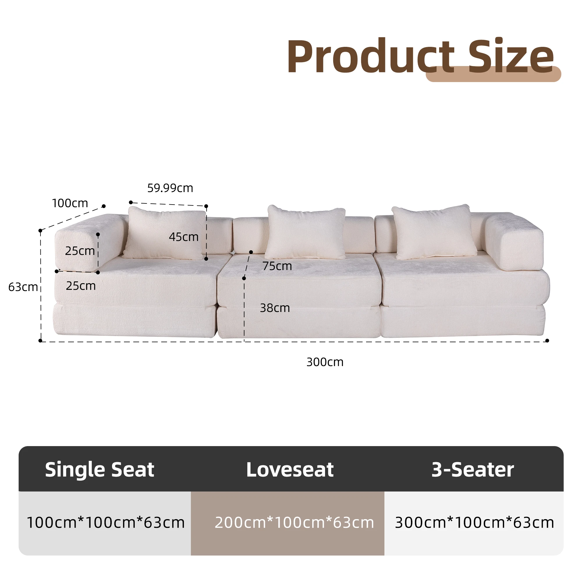 Белый диван-кровать из синели, раскладная гостевая кровать-кабриолет с подушками, 3-местный двухместный диван, модульный диван 3-в-1 для гостиной