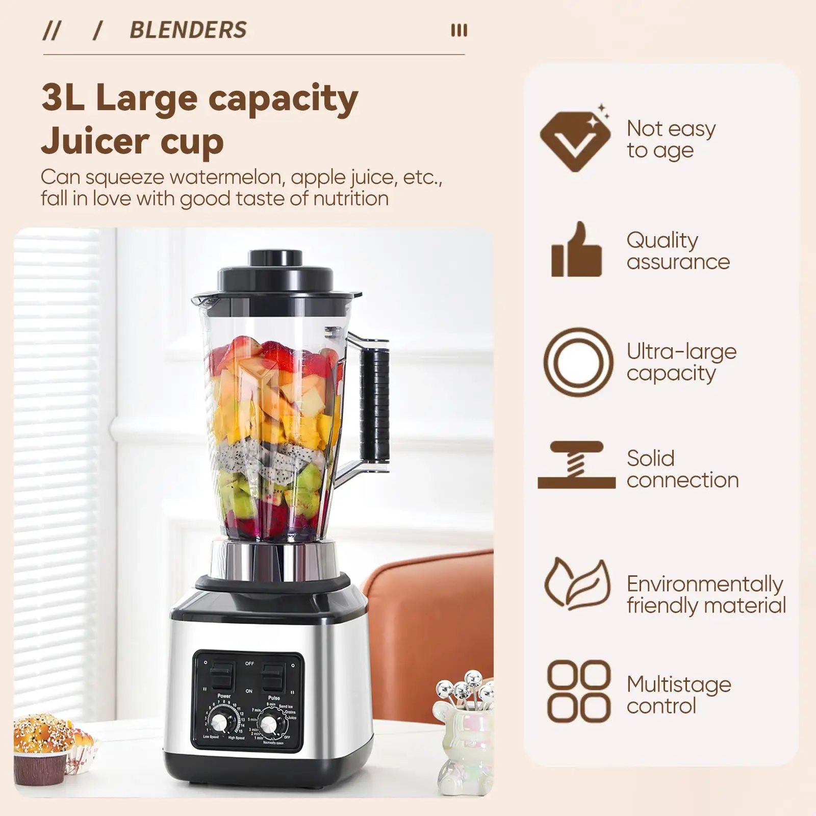 Блендер 3-в-1 мощностью 9500 Вт с таймером, емкостью 3 л, кухонный комбайн, мясорубка, соковыжималка, вилка европейского стандарта, 3 настройки скорости, многофункциональный