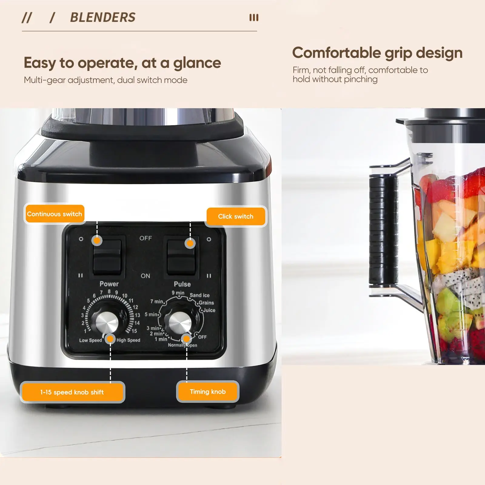 «Встроенная функция таймера обеспечивает точное управление обработкой.3 режима скорости с импульсной функцией обеспечивают идеальную консистенцию для различных ингредиентов и рецептов.