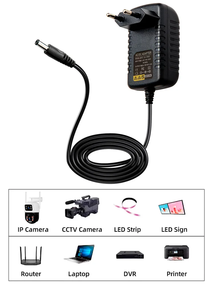 Блок питания камеры 1 м, адаптер питания постоянного тока 12 В, 2 А для камеры видеонаблюдения/IP-камеры/видеорегистратора/принтера/светодиодного маршрутизатора/