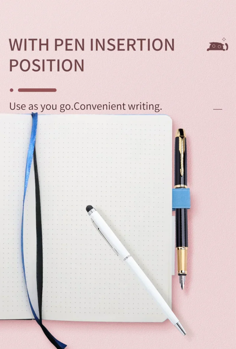 Кожаный стиль имеет два ремня для закладок, эластичный ремешок и отделение для ручки.