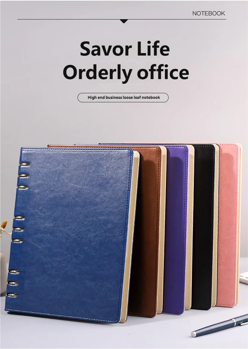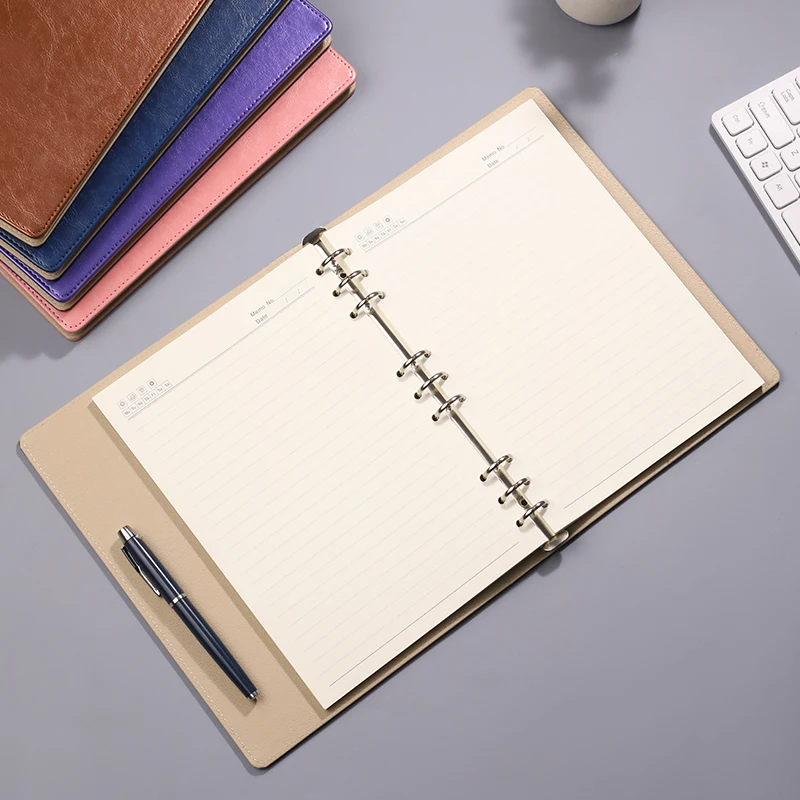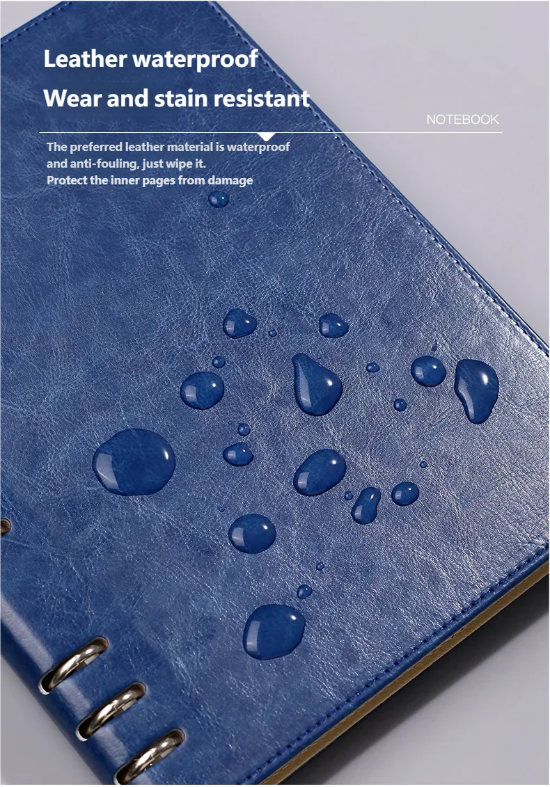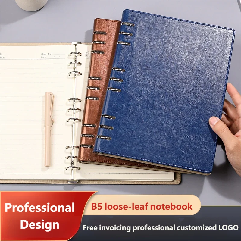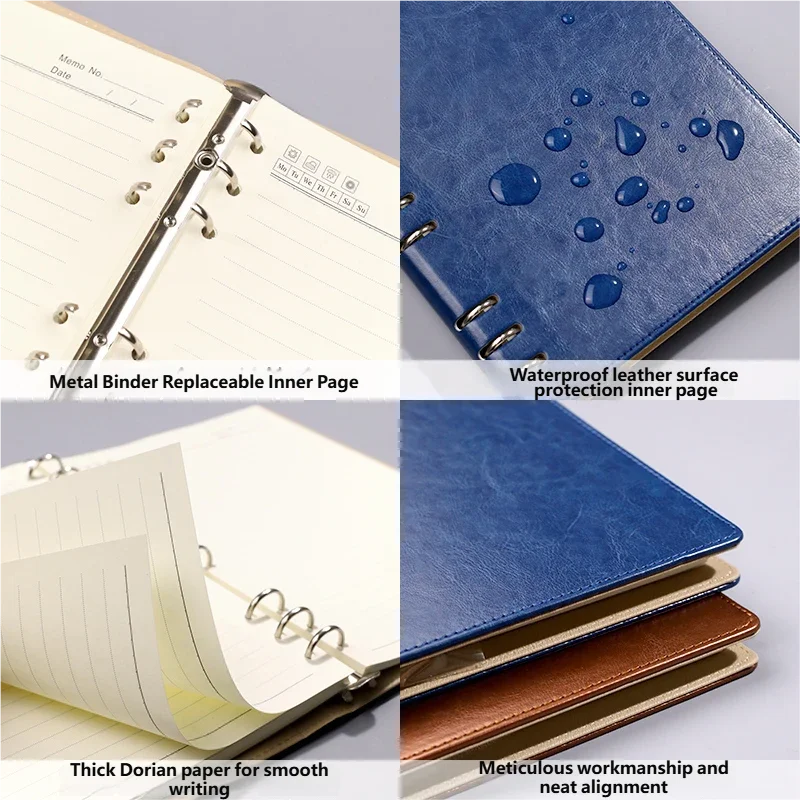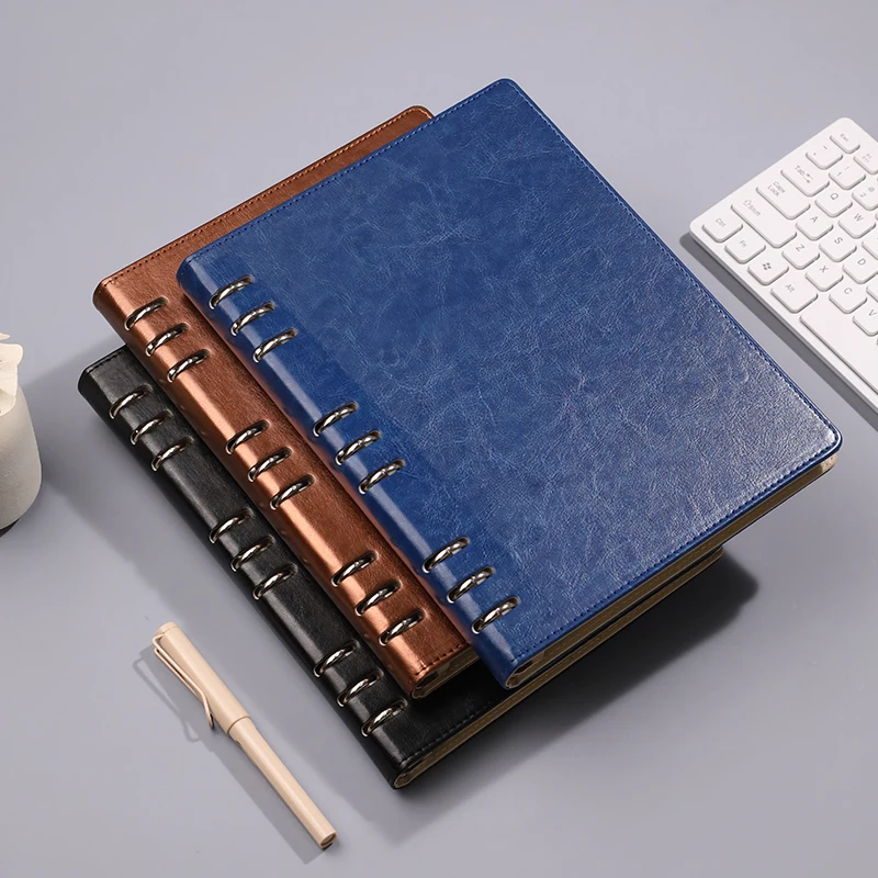 Блокнот формата B5 с 9 отверстиями, металлическим переплетом, водонепроницаемой кожаной обложкой и сменными толстыми страницами для офиса и школы