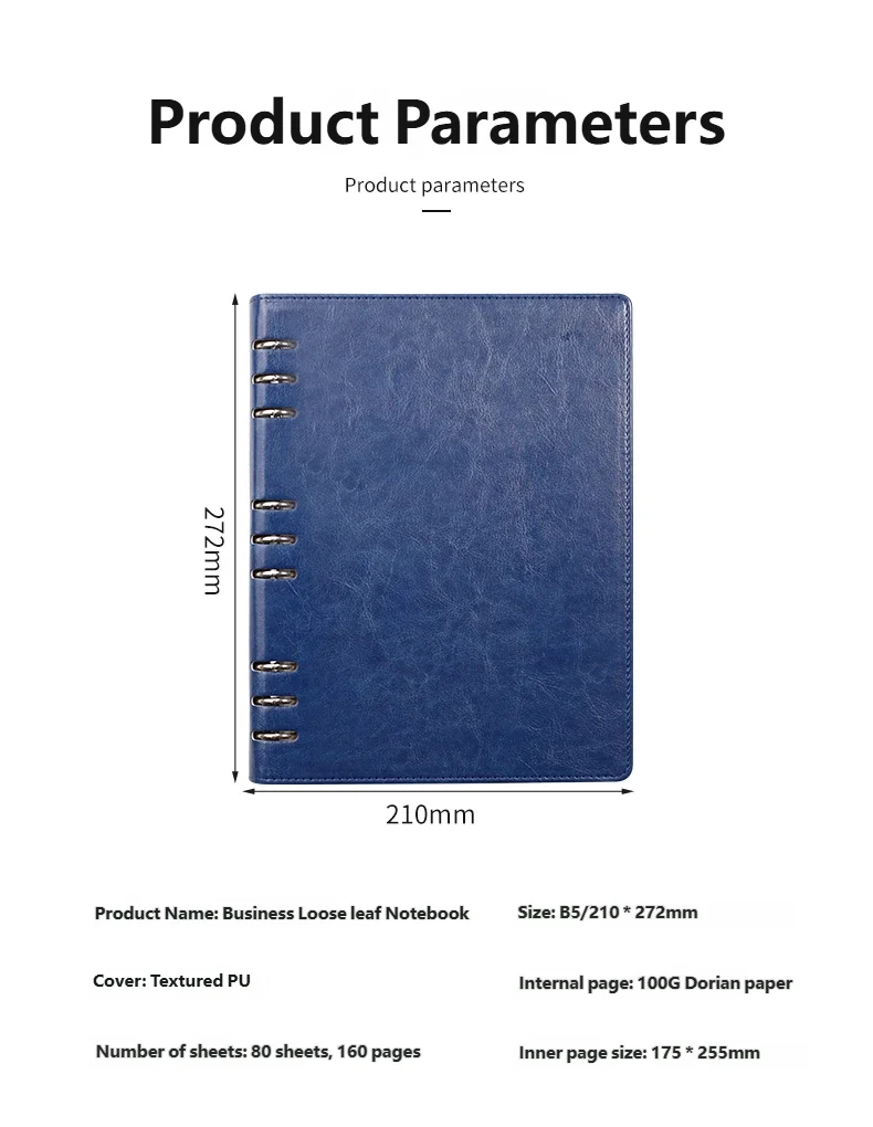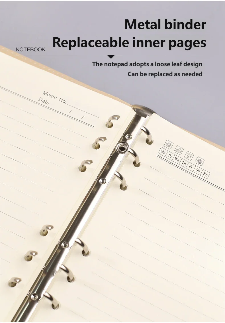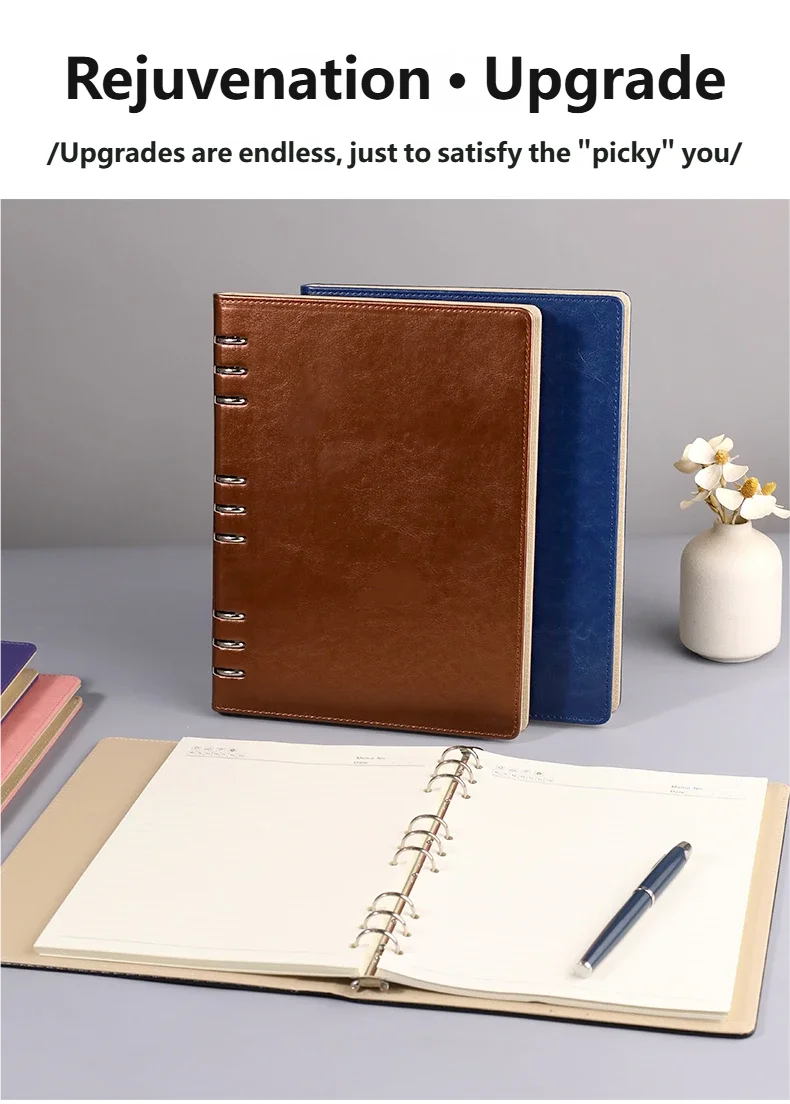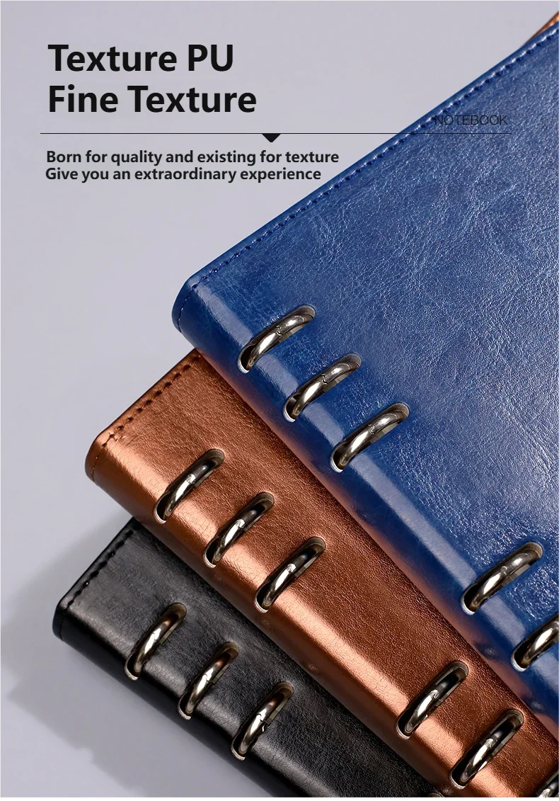 Блокнот формата B5 с 9 отверстиями, металлическим переплетом, водонепроницаемой кожаной обложкой и сменными толстыми страницами для офиса и школы