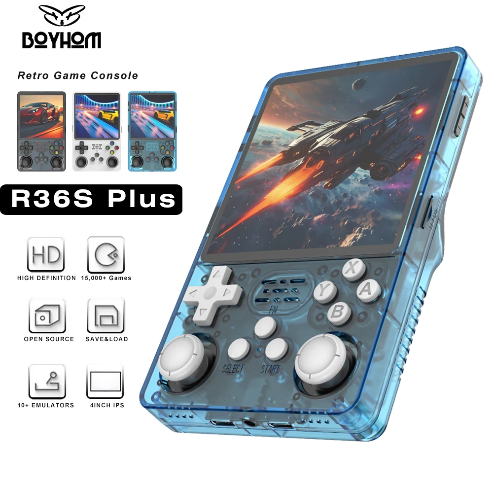 BOYHOM R36Plus Большой экран Linux OS Ретро игровая консоль R36S Plus 4,0-дюймовый IPS-экран Wi-Fi для GBA 10+ Эмулятор Карманный видеоплеер