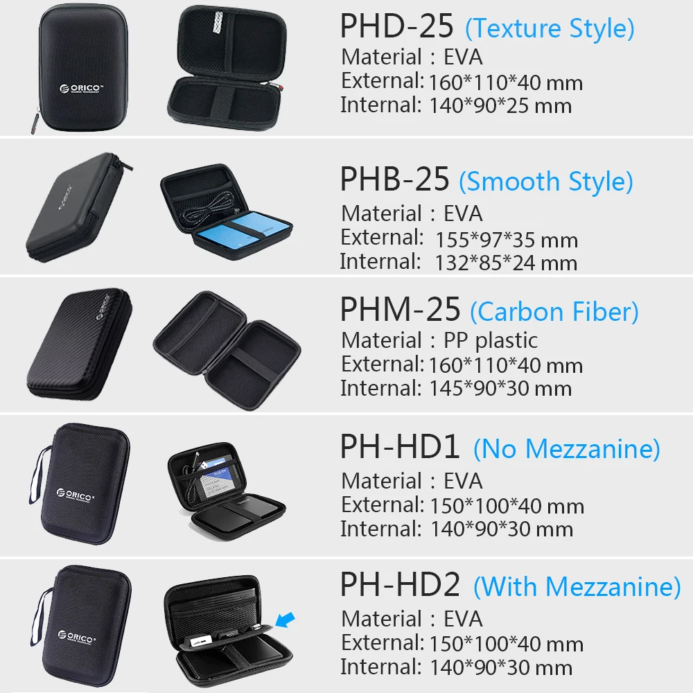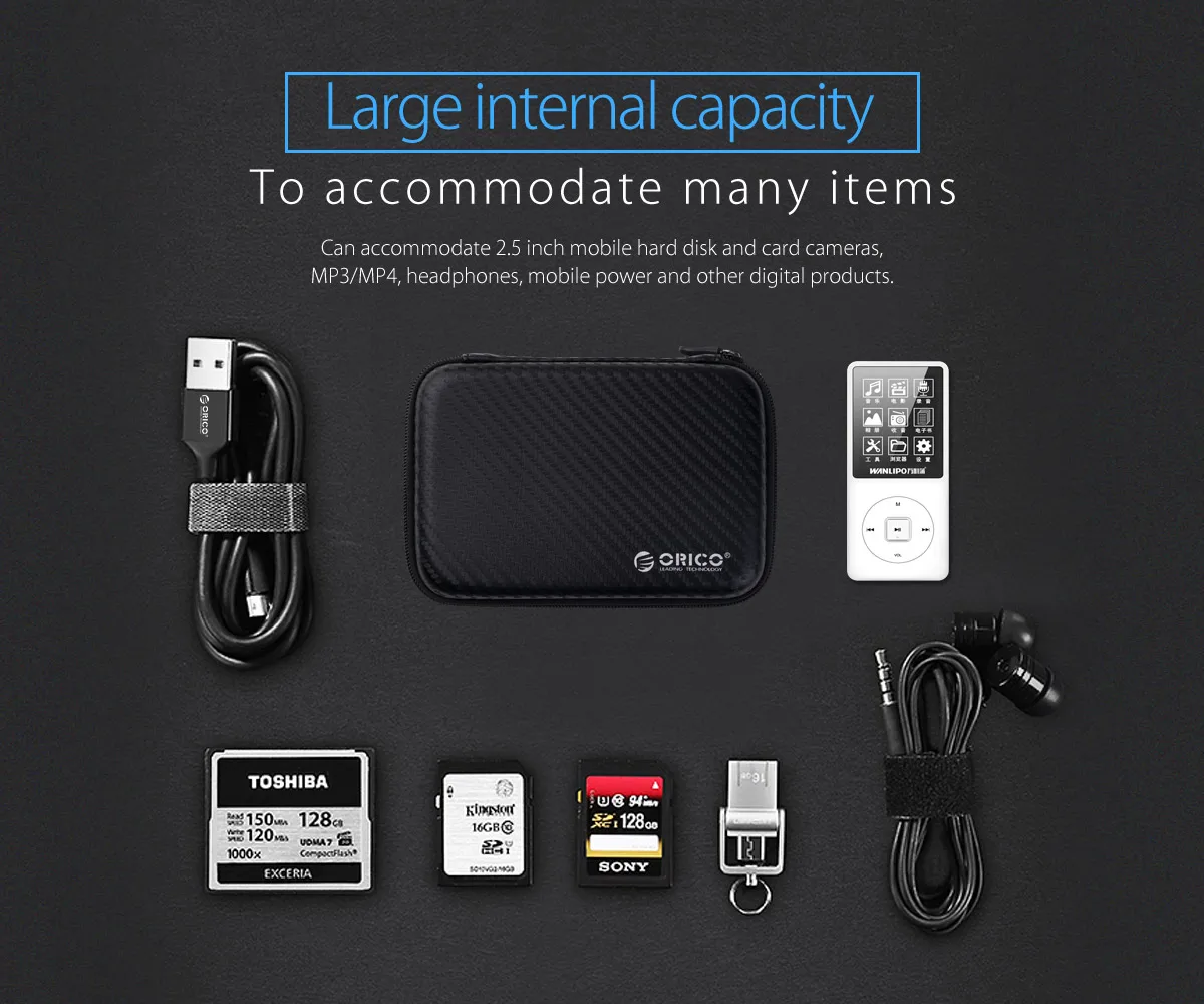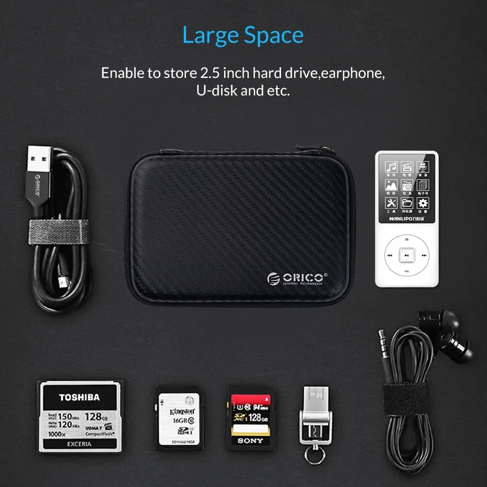 Чехол для жесткого диска ORICO 2,5, портативная защитная сумка для жесткого диска для внешнего 2,5-дюймового жесткого диска/наушников/U-диска, черный чехол для жесткого диска