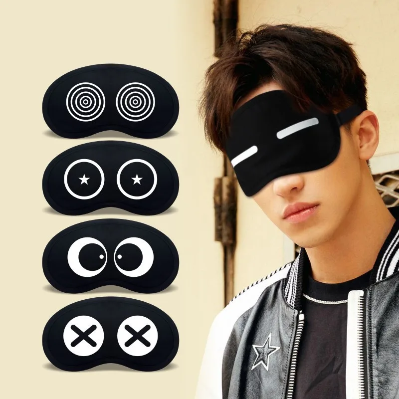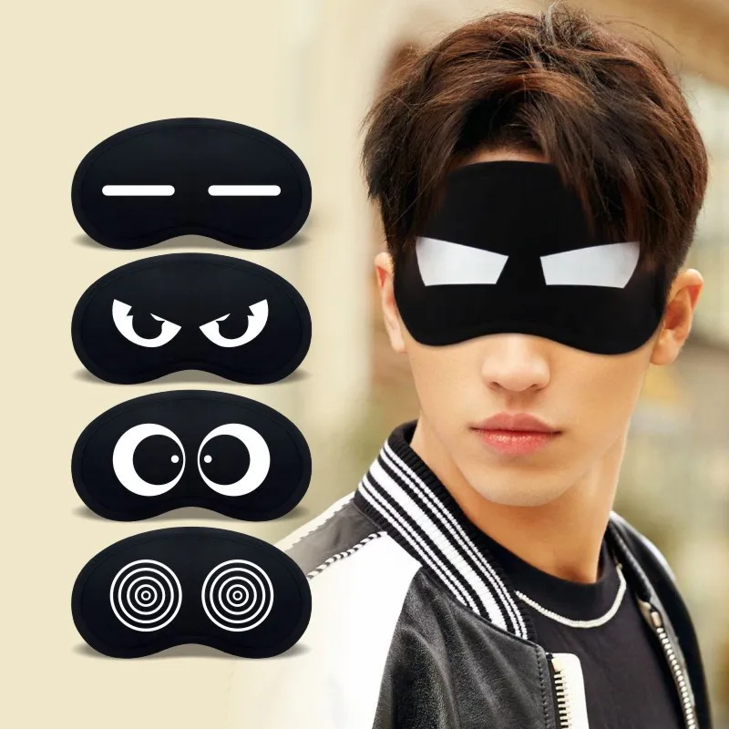 Симпатичная выразительная черная маска для глаз для женщин и девочек, мужчин, офисные путешествия, незаменимый подарок, унисекс, забавная маска для сна с героями мультфильмов