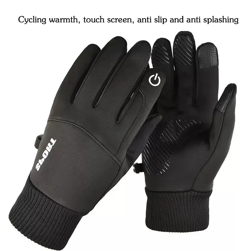 Черные Зимние теплые водонепроницаемые флисовые перчатки с пальцами для езды на велосипеде, занятий спортом на открытом воздухе, бега, езды на мотоцикле, лыжах, сенсорных экранов