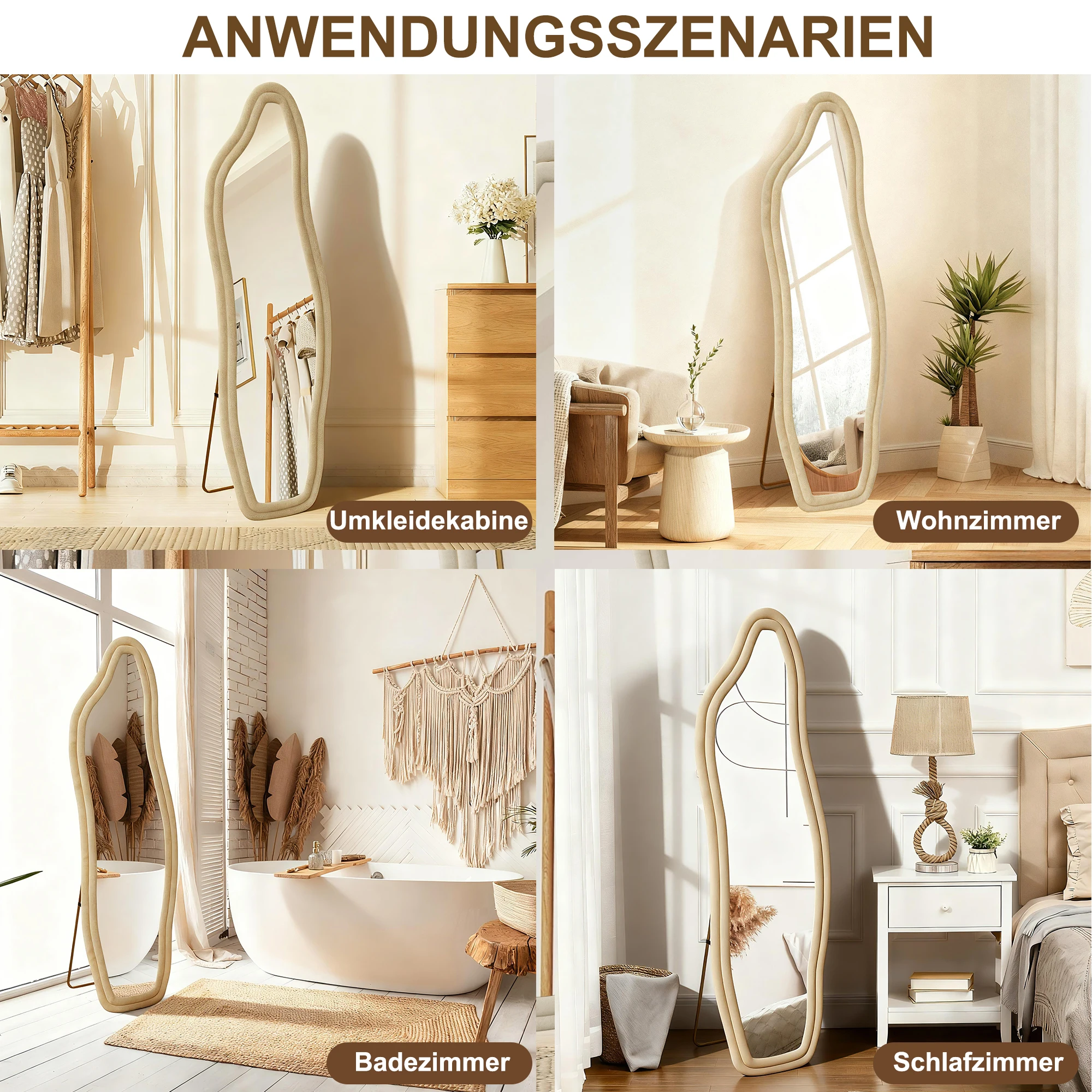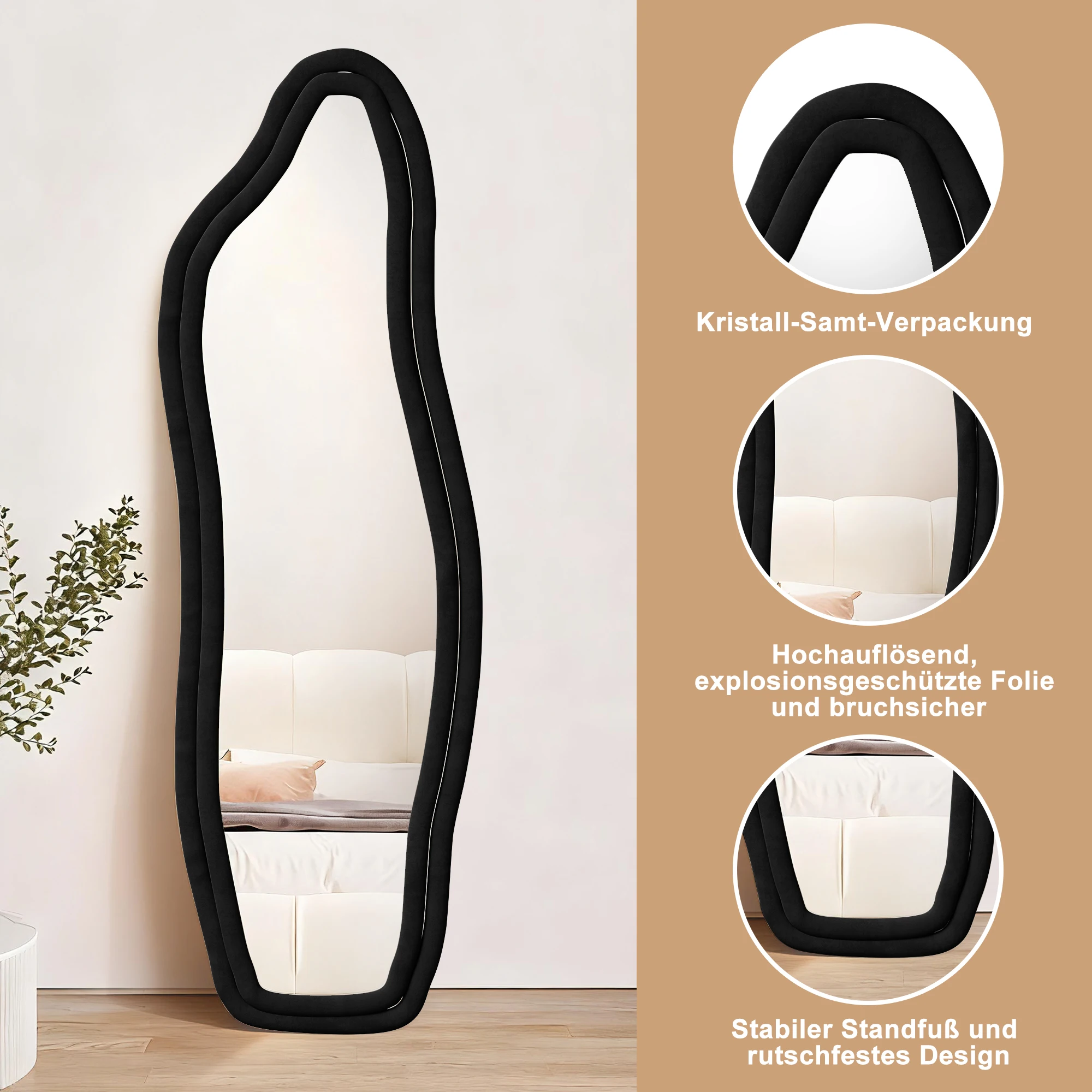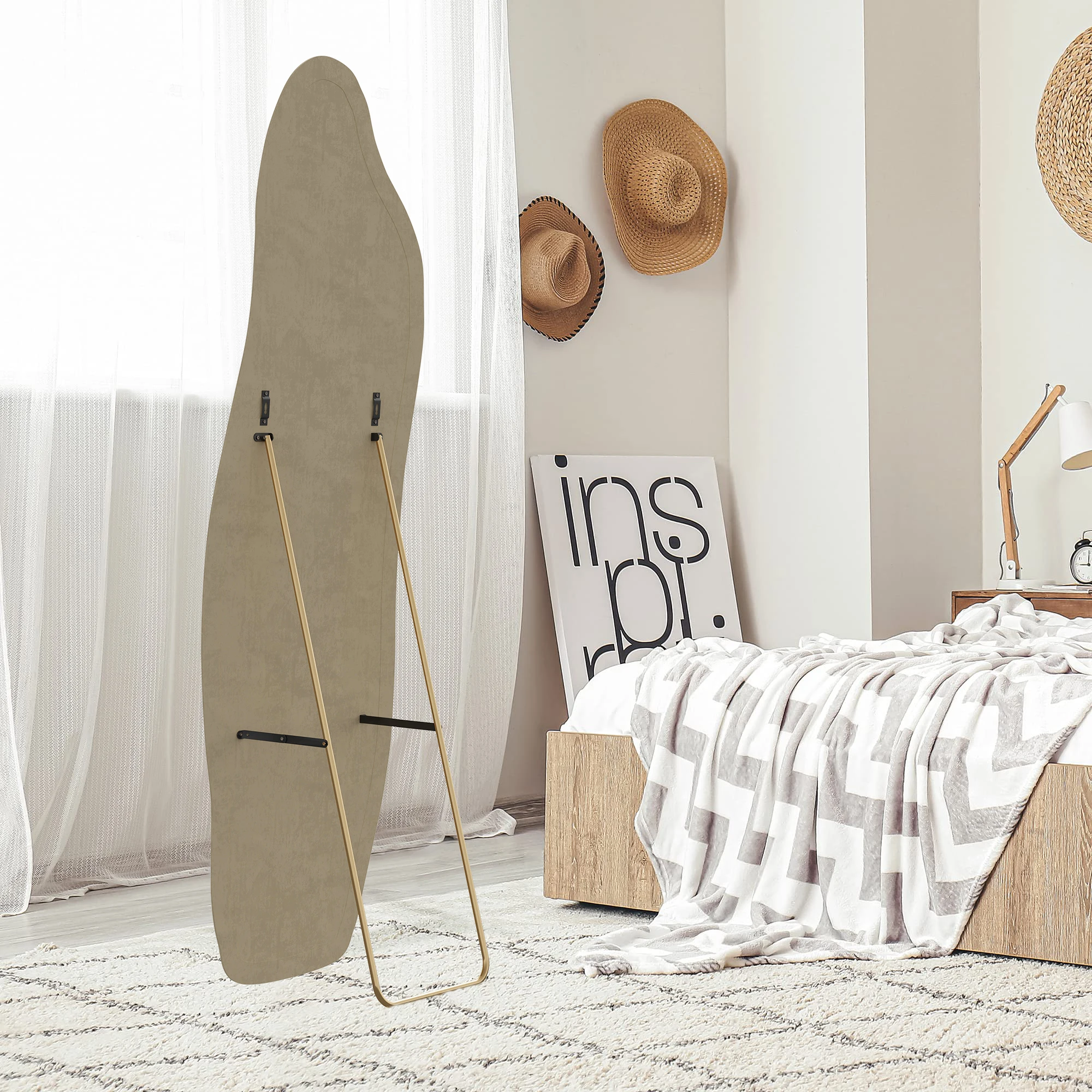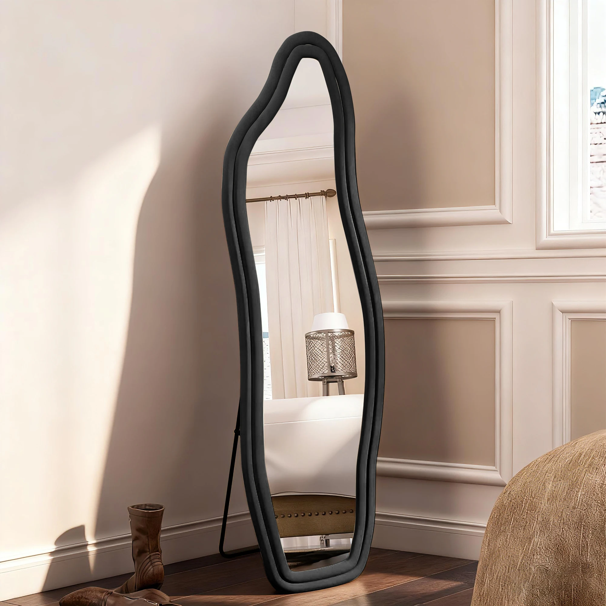 Comanlai 160×50 см волнистое напольное зеркало для ванной комнаты, зеркало в полный рост, настенное зеркало, зеркало всего тела для гостиной, стоящее зеркало