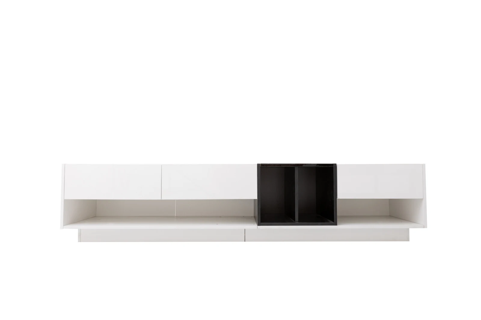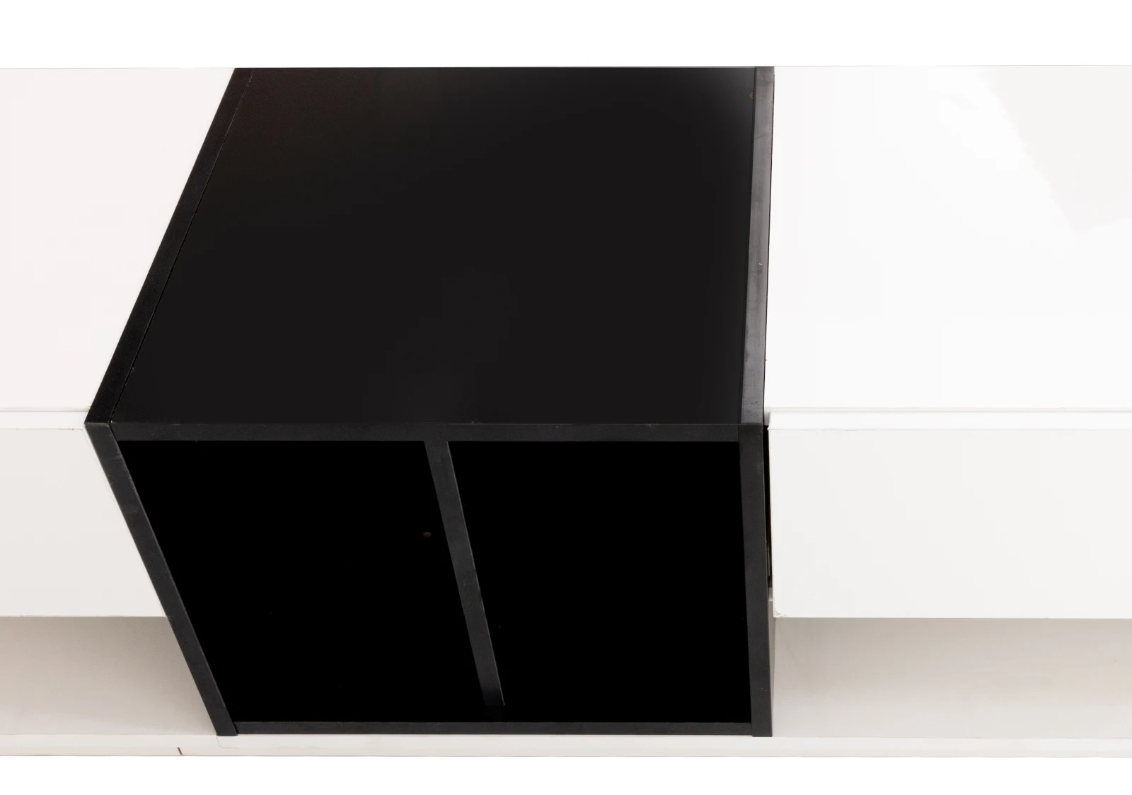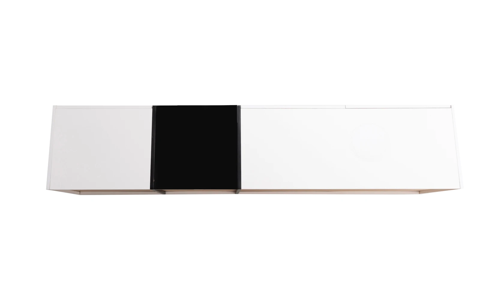 1.Жирная цветовая игра: сочетание яркого белого и глубокого черного придает этому шкафу для телевизора современный и художественный вид.