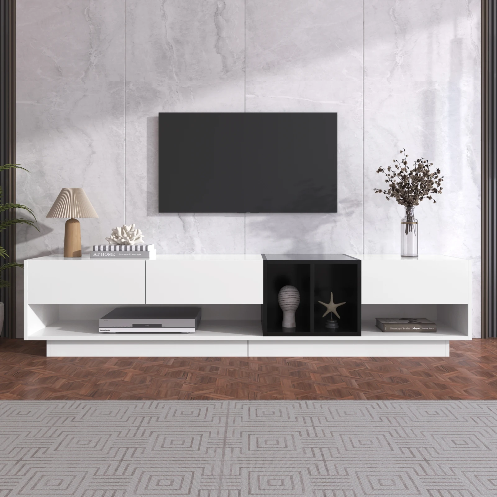 Comanlai 190 см ТВ-шкаф, ТВ-стол, для телевизоров 70/75/80 дюймов, низкая панель с открытыми отделениями, ТВ-доска и 3 ящиками для хранения