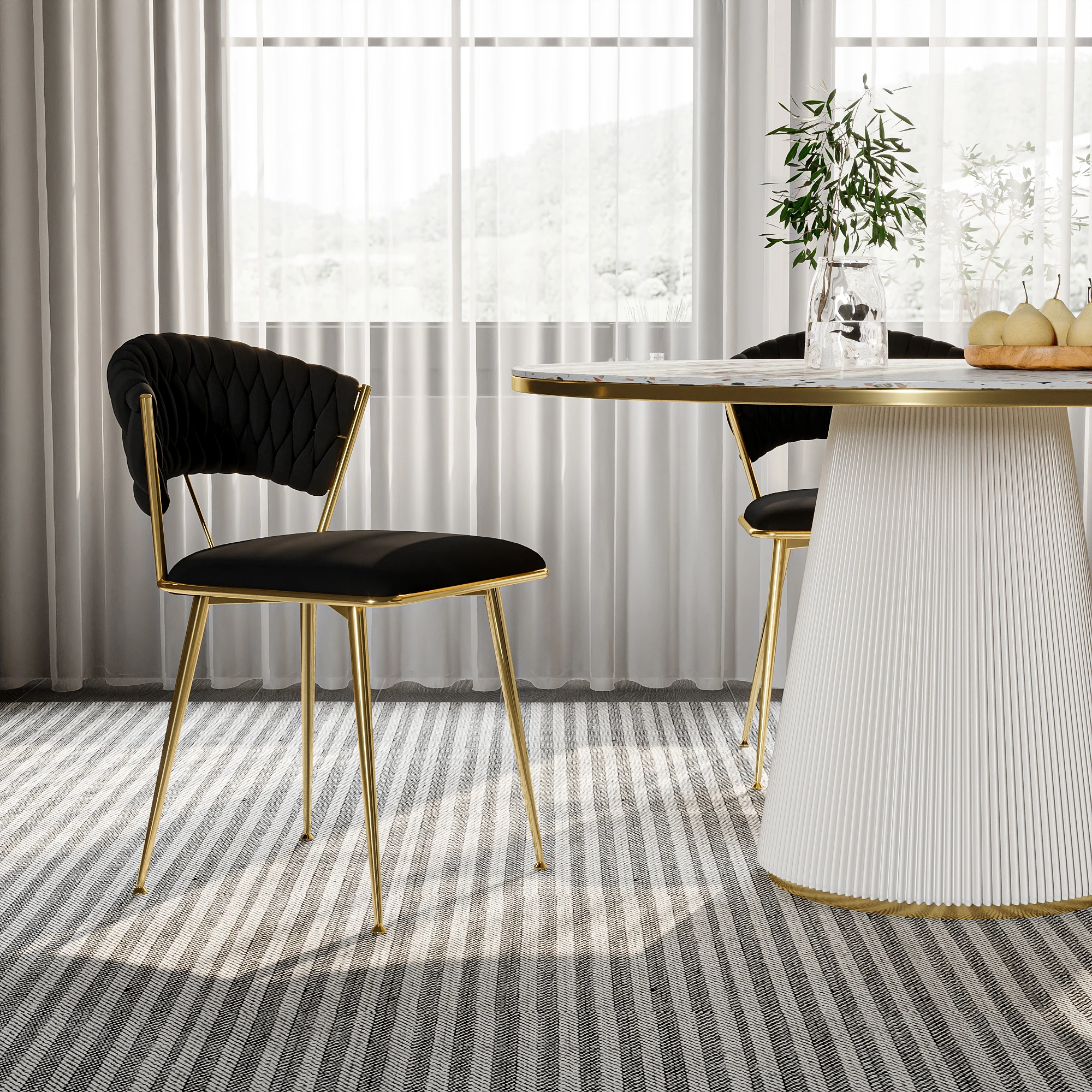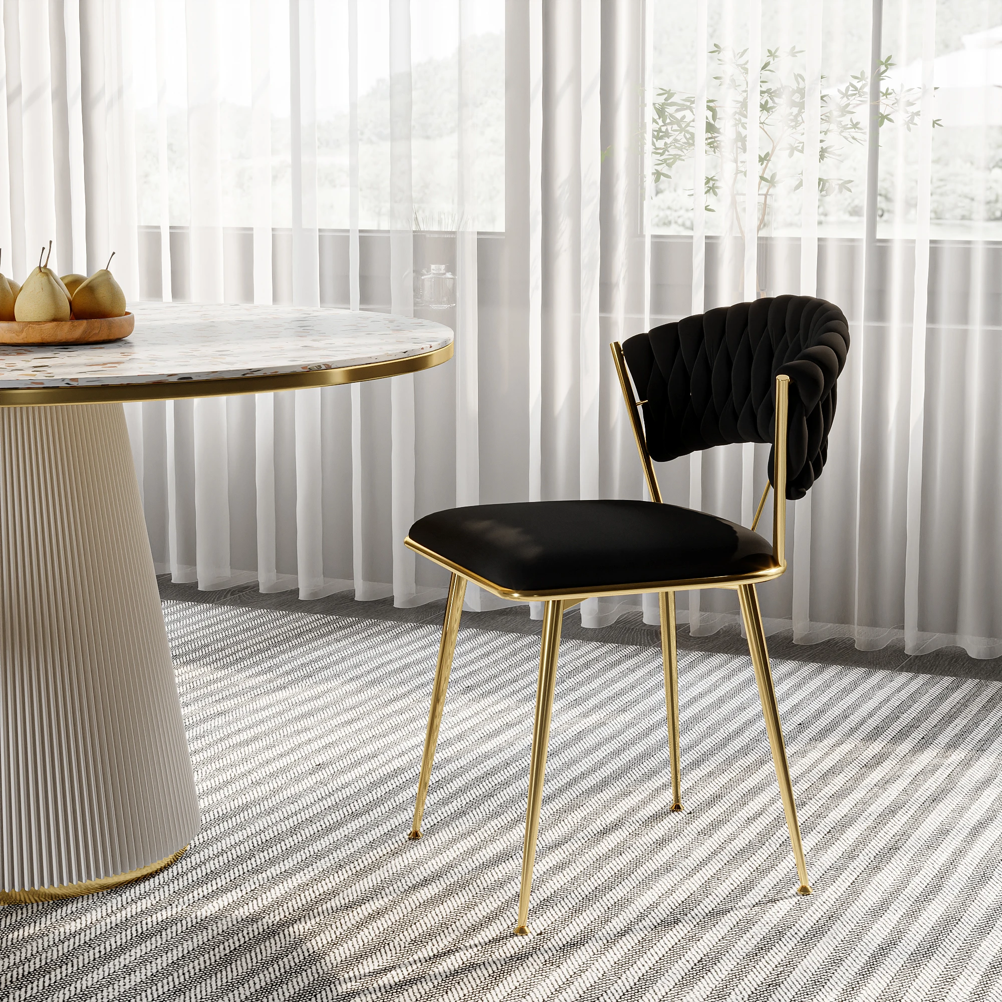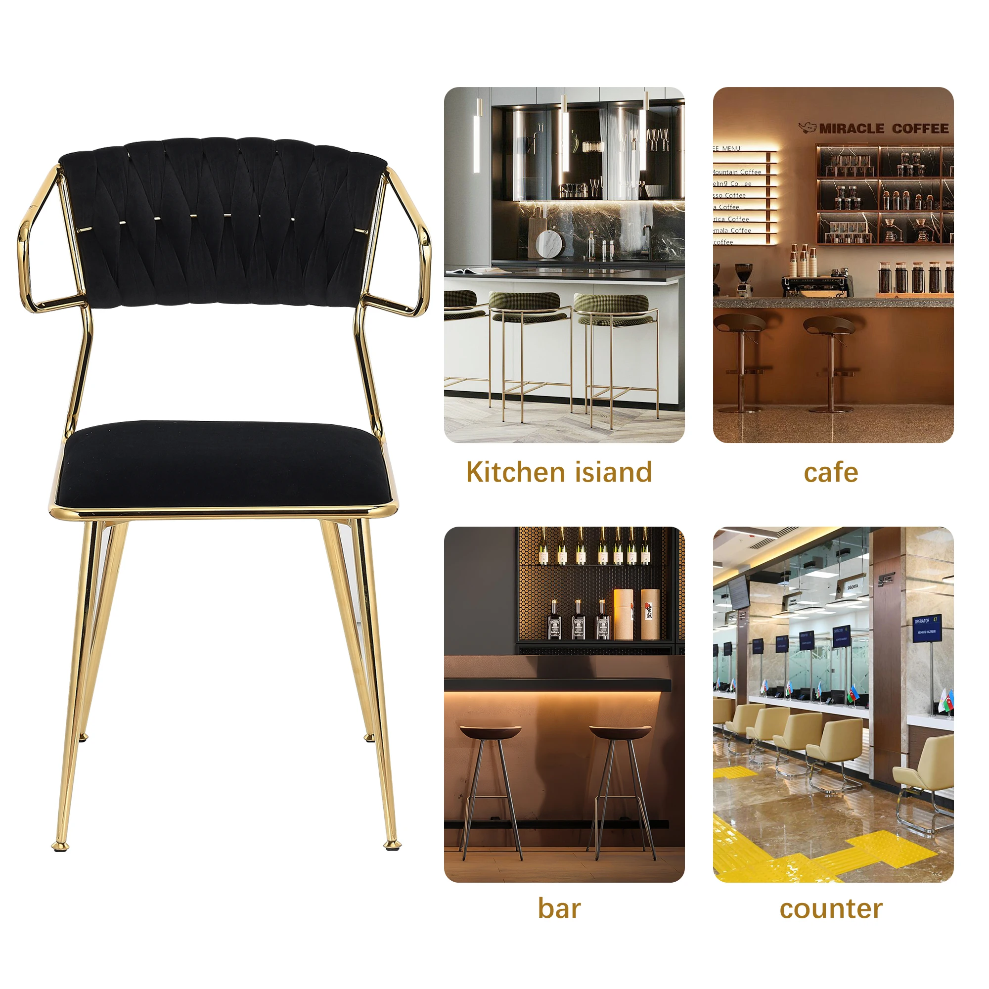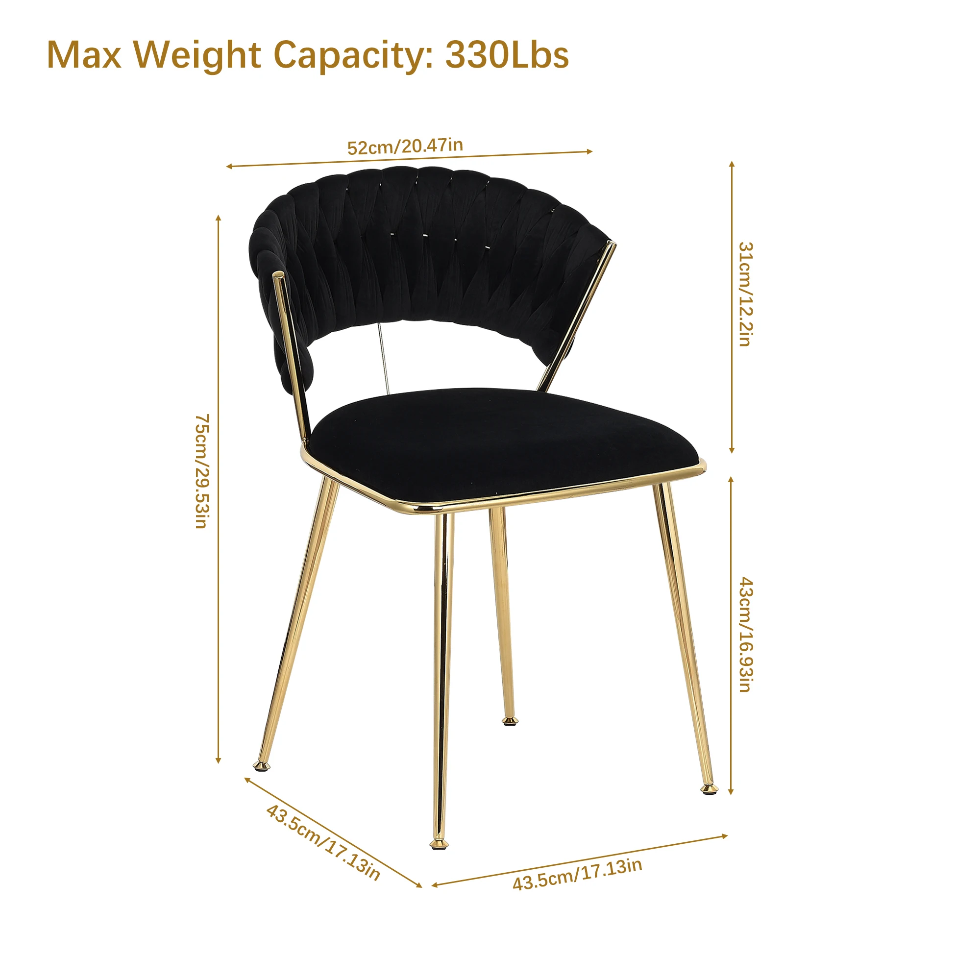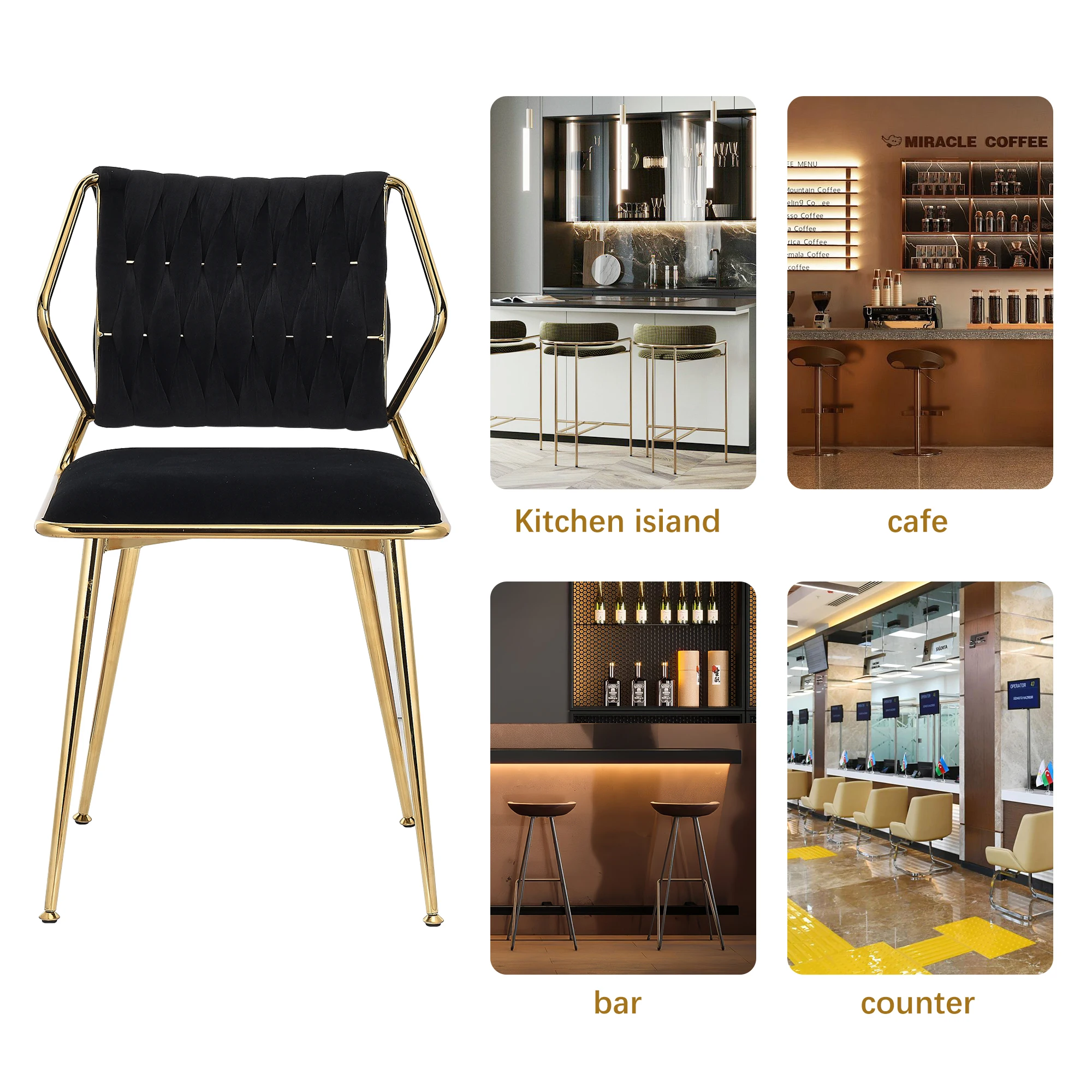2.Стабильный и прочный: этот бархатный стул, поддерживаемый четырьмя прочными металлическими ножками, обеспечивает превосходную стабильность и долговечность, способную выдерживать нагрузку до 300 фунтов.