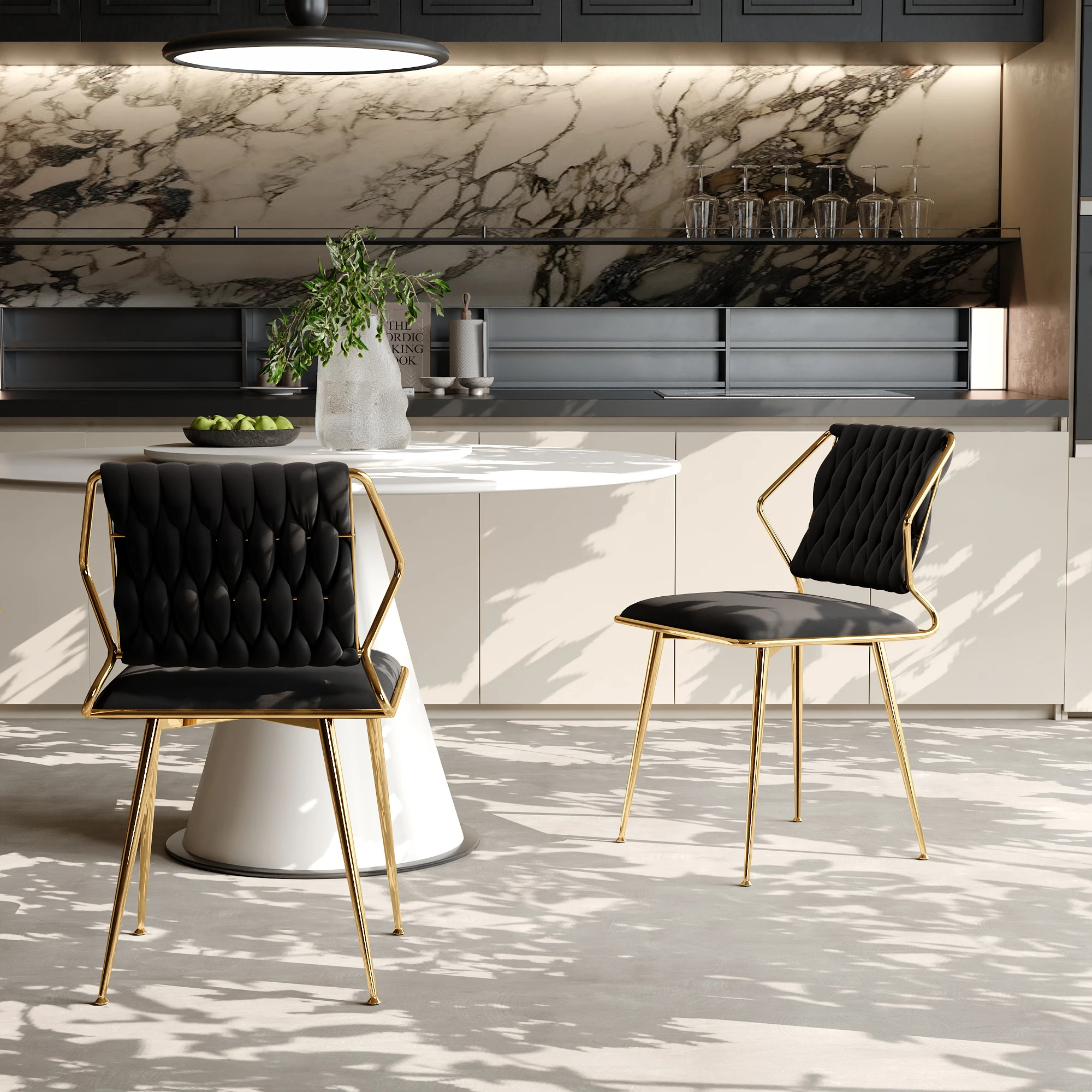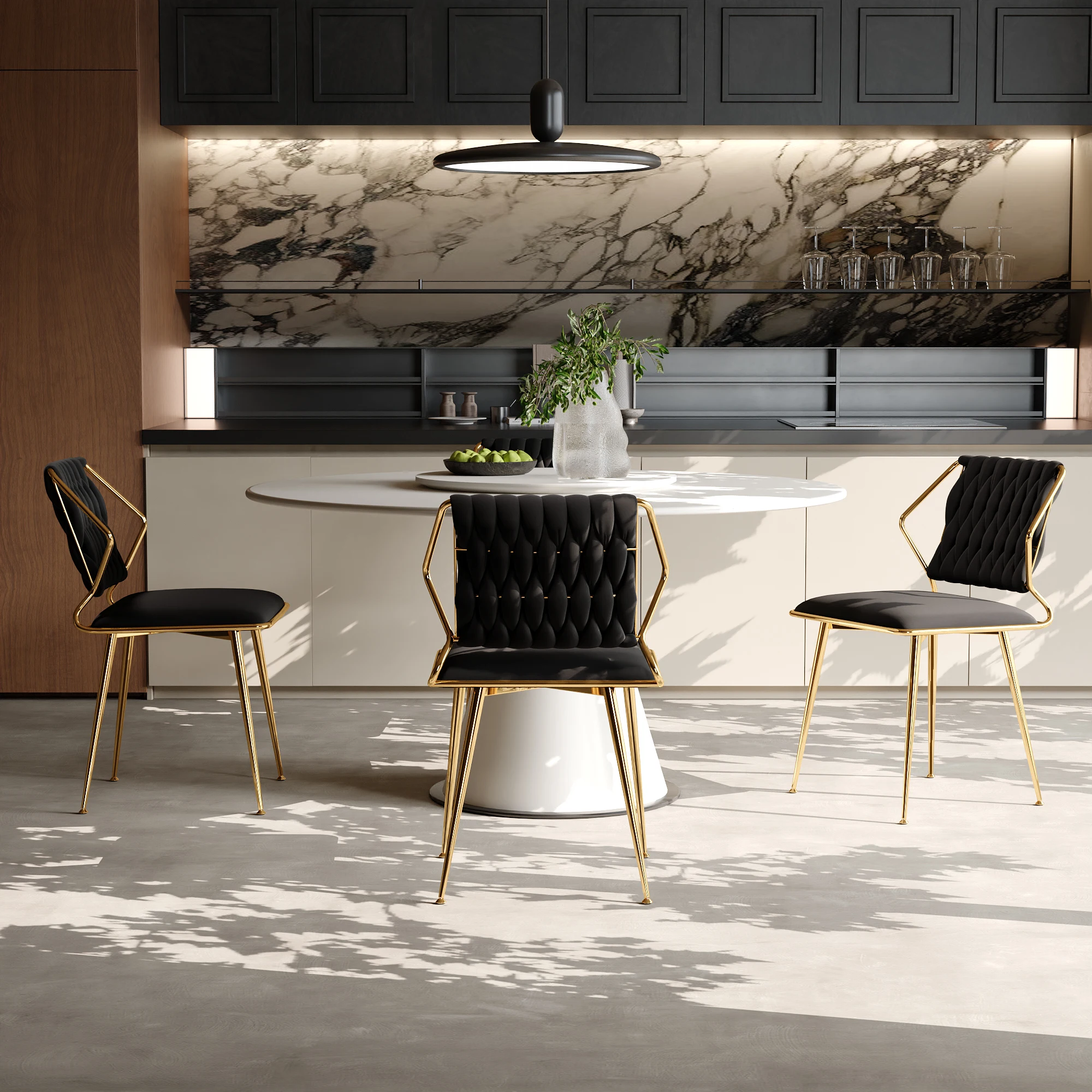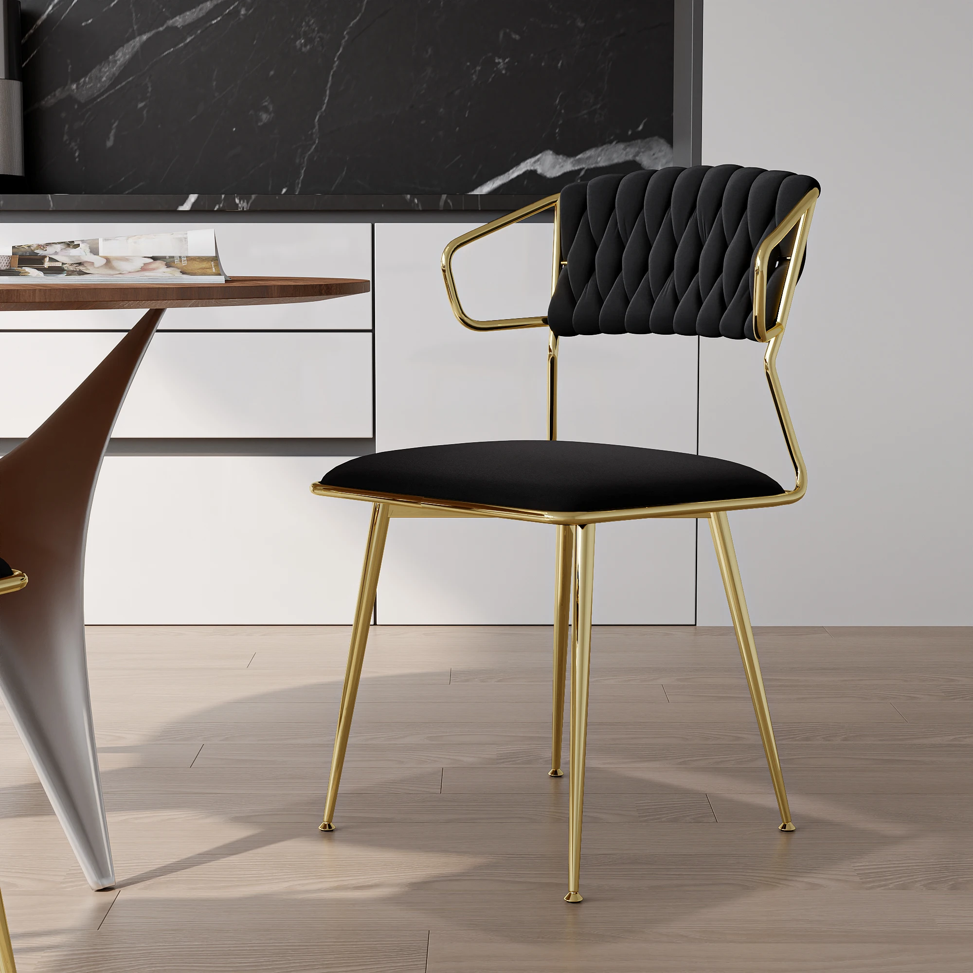 3.Простой позолоченный роскошный дизайн. Эти стулья с минималистским дизайном и позолоченными акцентами дополнят любой дизайн интерьера.Их элегантная, современная эстетика органично вписывается в различные стили декора, добавляя нотку стильной роскоши в вашу обеденную площадь.