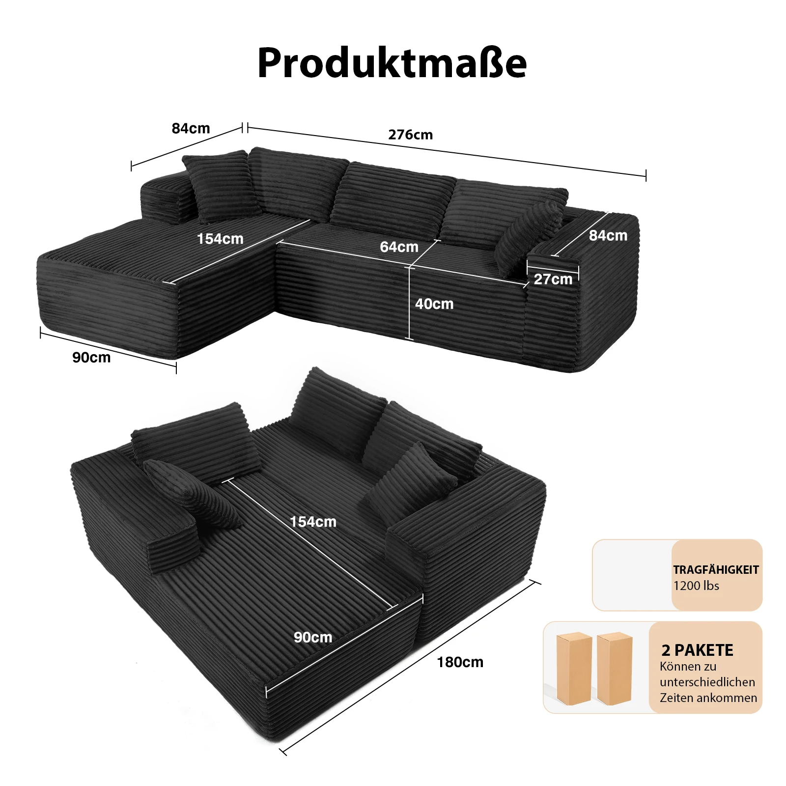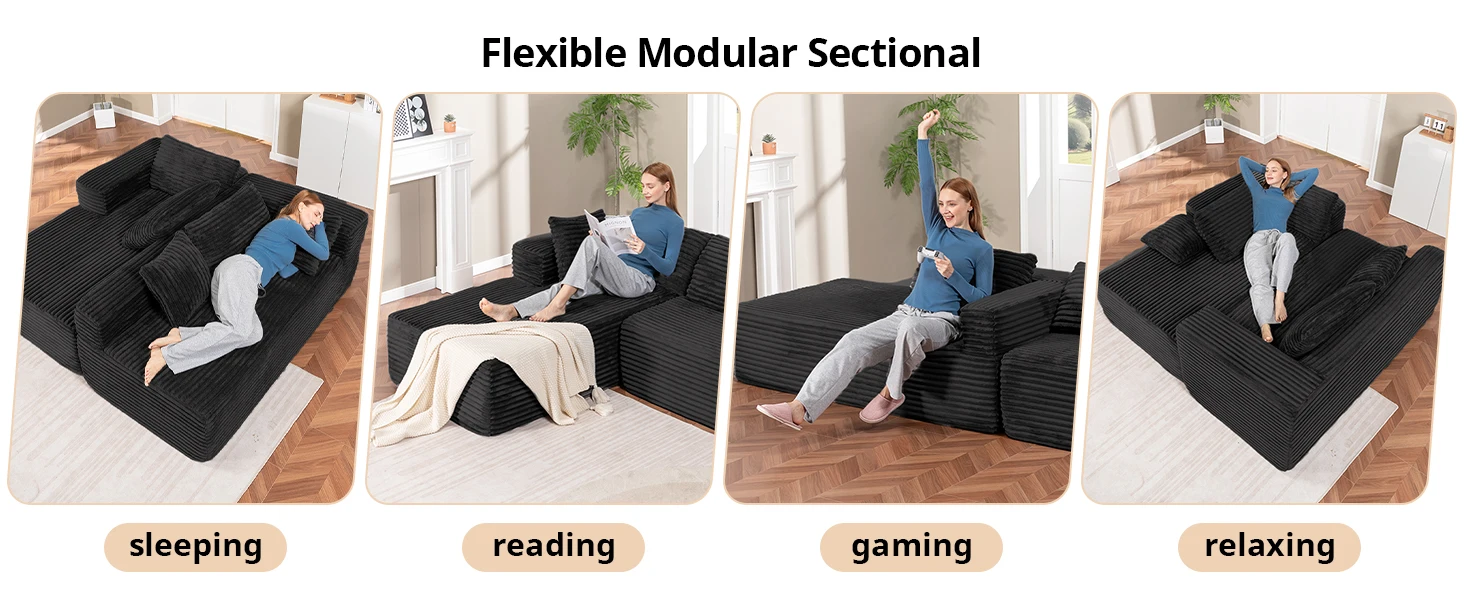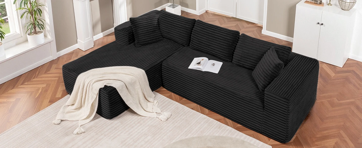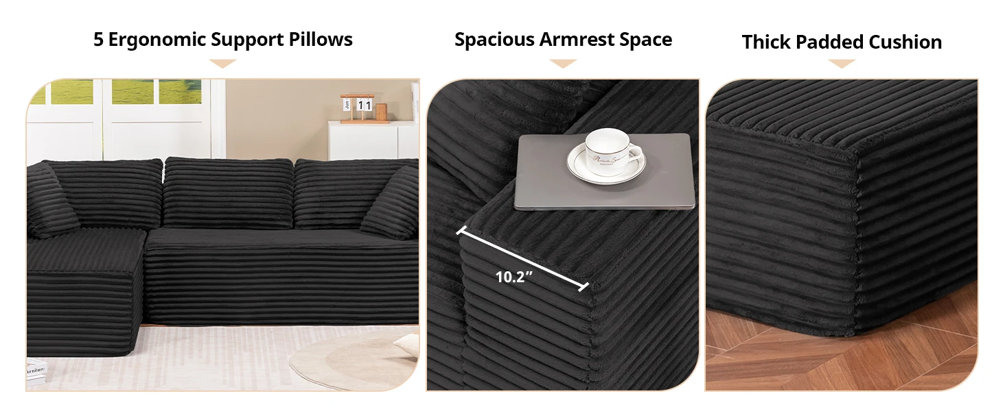 COMHOMA 105-дюймовый модульный диван с глубоким сиденьем, L-образный диван с широкими подлокотниками, шнуровая ткань, пена высокой плотности, шезлонг для гостиной, сборка не требуется.