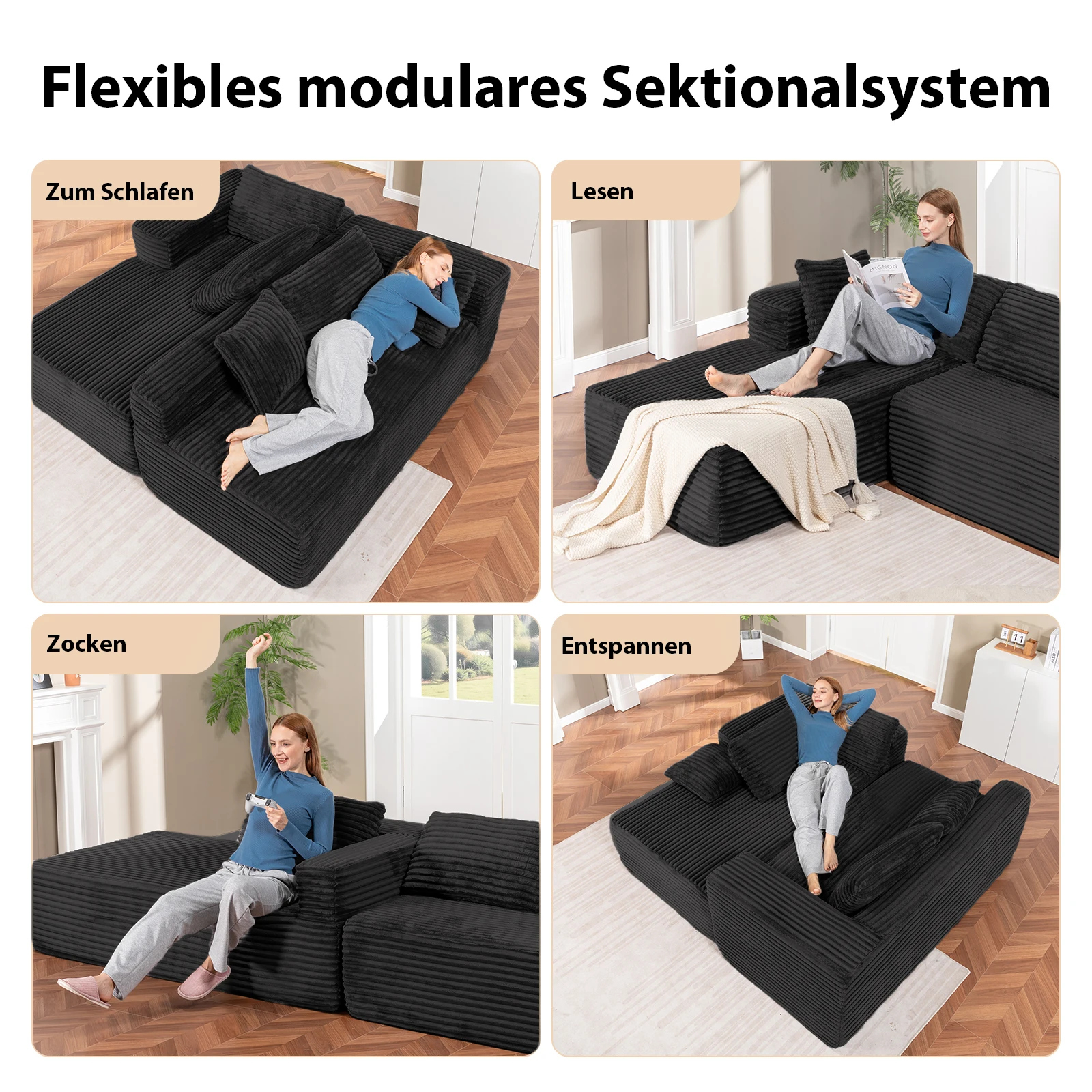Гибкая модульная конструкция-Наслаждайтесь максимальной универсальностью нашего модульного L-образного дивана.Он состоит из двух движущихся частей и может быть размещен на стене или в открытых пространствах.Таким образом, он легко превращается из традиционного дивана в просторный диван-кровать.