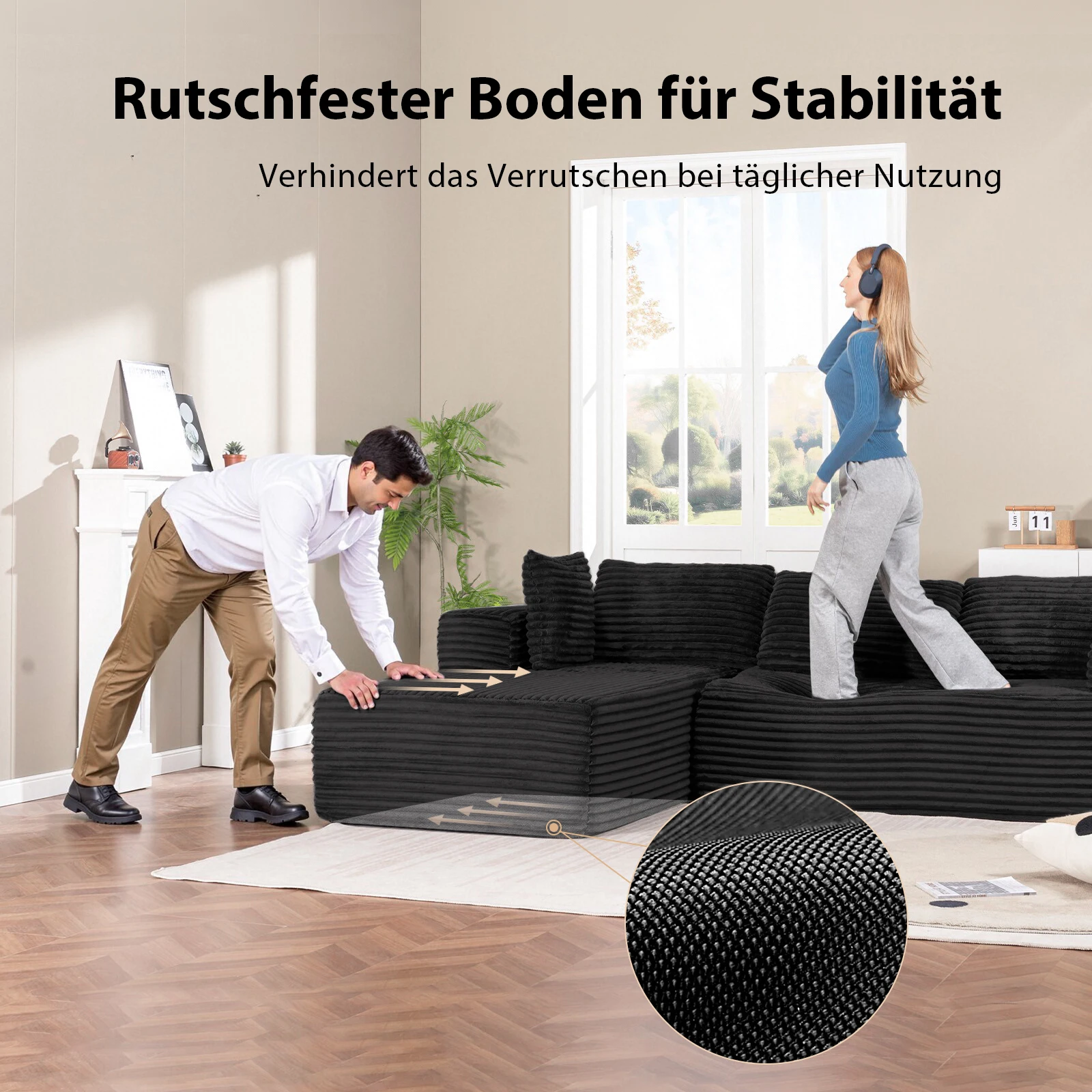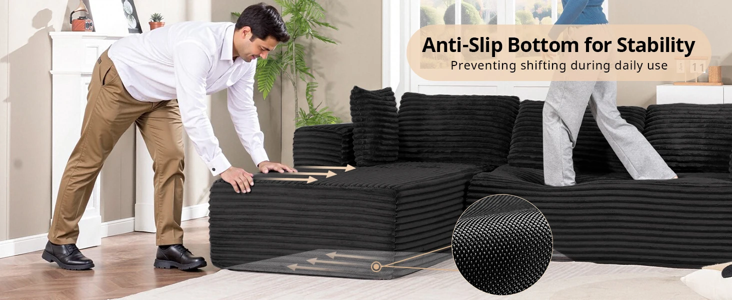 Нескользящее дно для устойчивости.— Каждый блок имеет нескользящее основание, которое гарантирует, что диван будет прочно стоять на месте даже на гладком полу.Идеально подходит для активных домохозяйств, так как предотвращает скольжение в повседневной жизни, когда дети играют или переодеваются.