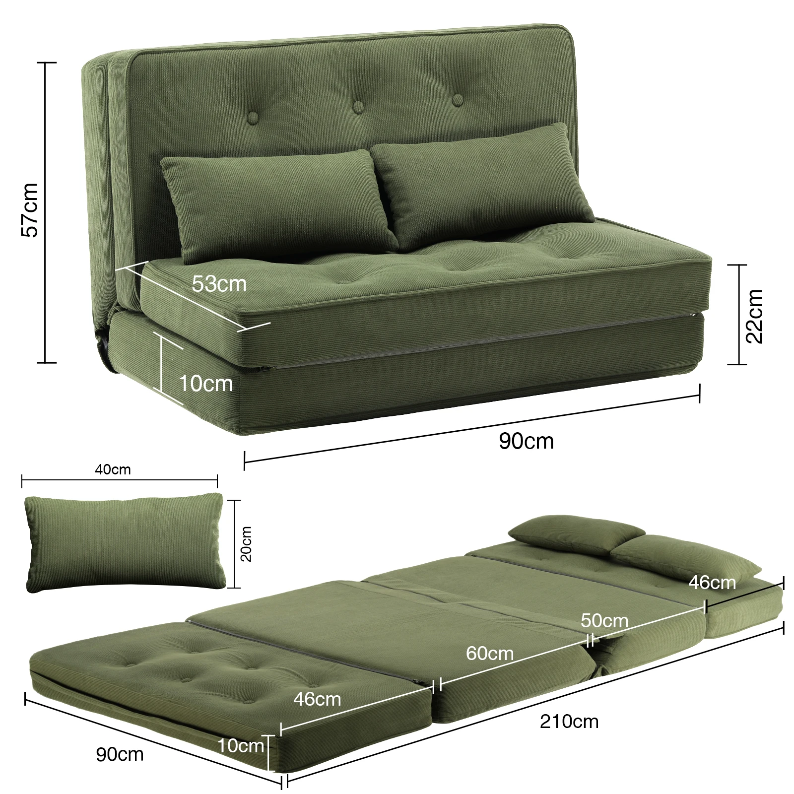 Современный стиль:Этот складной диван-кровать имеет чистые линии и простой дизайн, поставляется с двумя стильными подушками и придает элегантность и комфорт вашему интерьеру.Кроме того, вы можете расслабить усталое тело и снять усталость.
