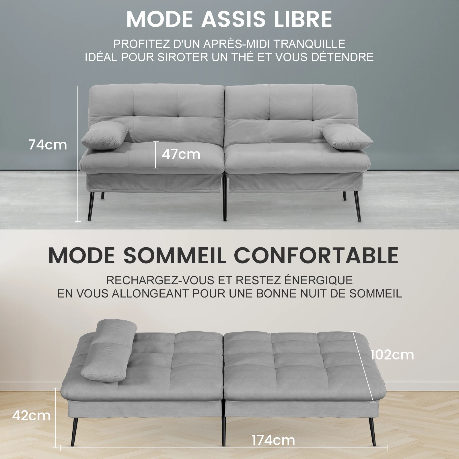 Легко собрать: Диван-кровать легко собрать с помощью прилагаемых инструментов, а прочную ткань легко чистить.Дополнительный чехол на диван можно снять и постирать в любое время.