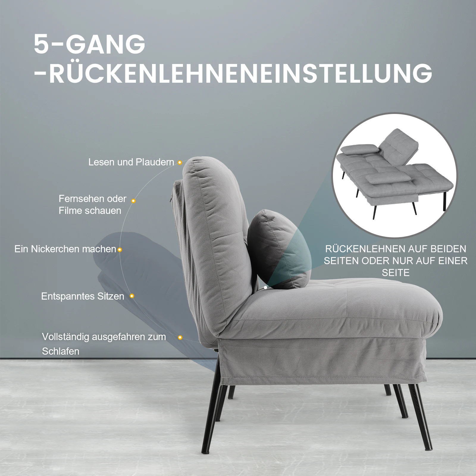 COMHOMA Диван-кровать с функцией сна-складной чехол-футон-угловой диван-гостяной диван 3-местная регулируемая спинка серая ткань