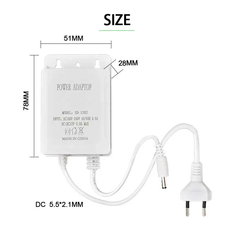 DC12V 2A Водонепроницаемый адаптер питания европейского стандарта для камер видеонаблюдения AHD Камера NVR DVR Вход AC100V-240V 5,5 мм * 2,1 мм