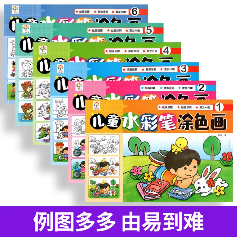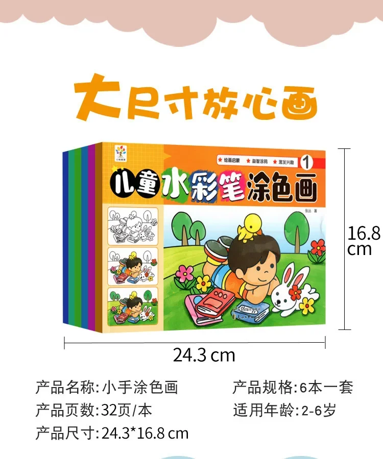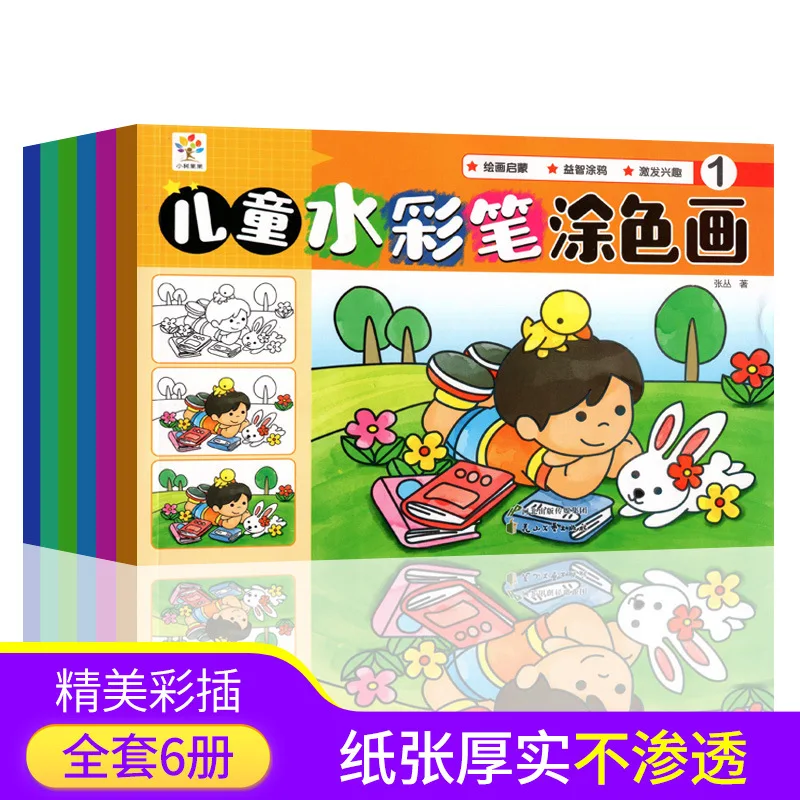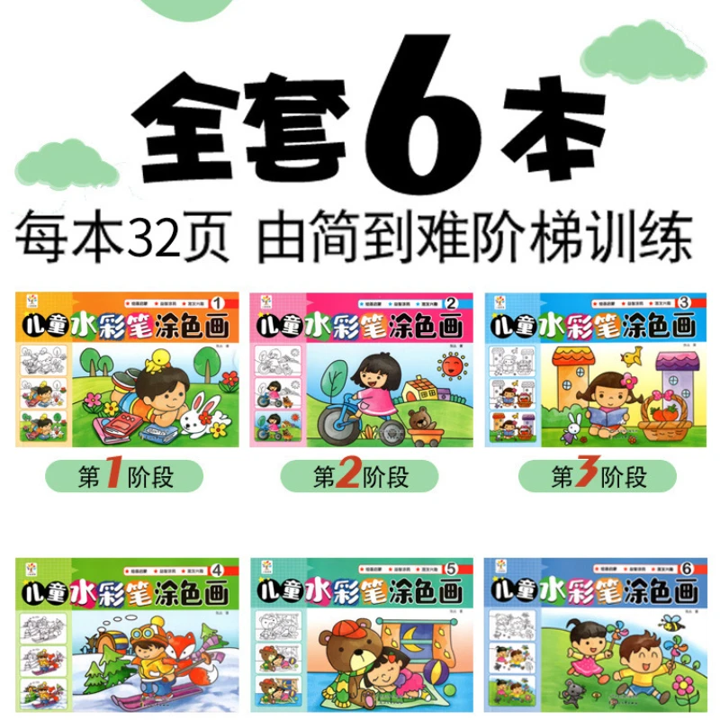 Детская Акварельная ручка, раскраска, 6 томов, детская картина, развивающая головоломка, граффити, книжка-раскраска