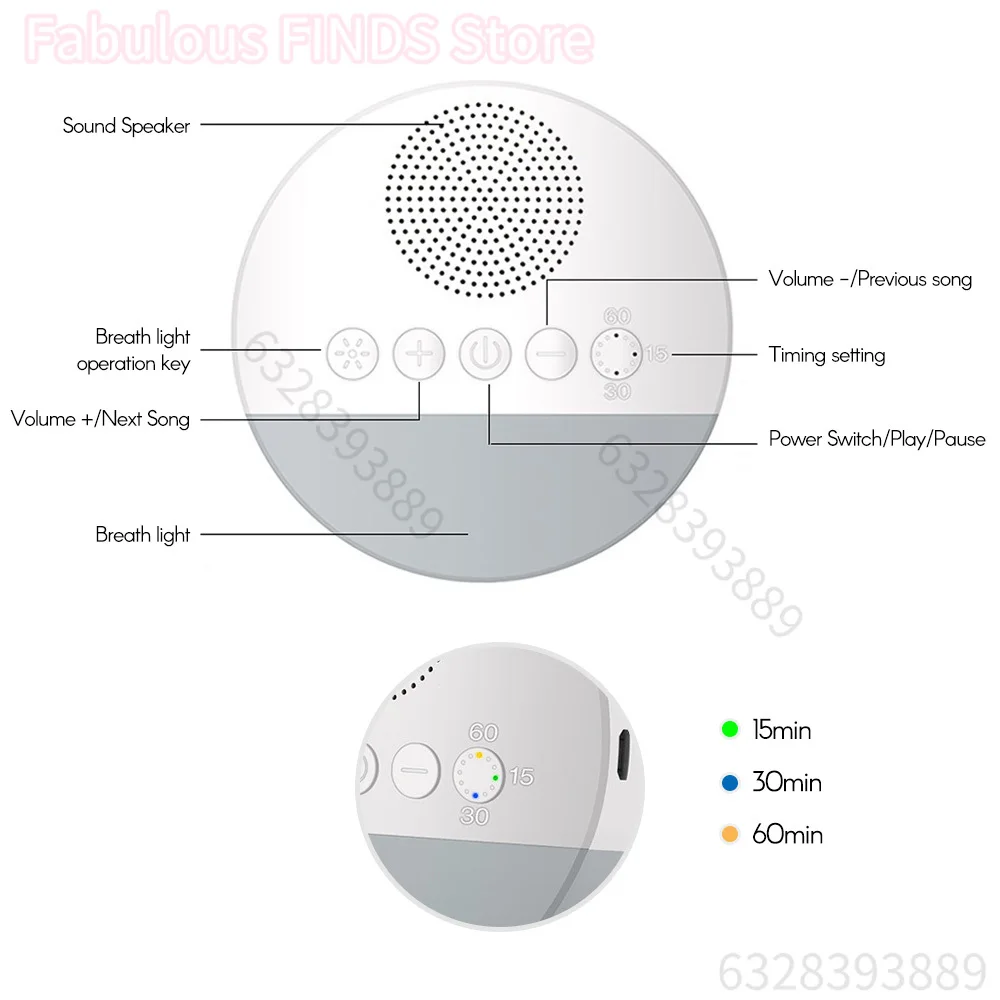 Детская машина с белым шумом, перезаряжаемая отключенная через USB машина для сна, звуковой плеер для сна, ночник, таймер, шумоподавитель