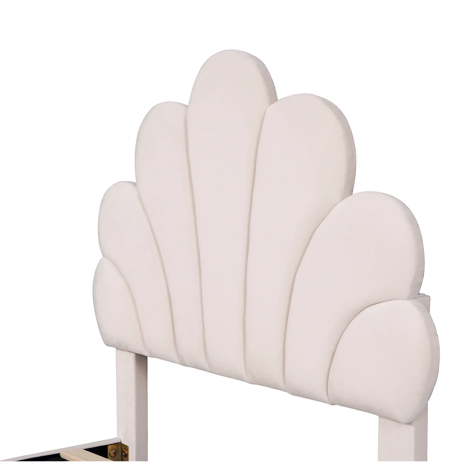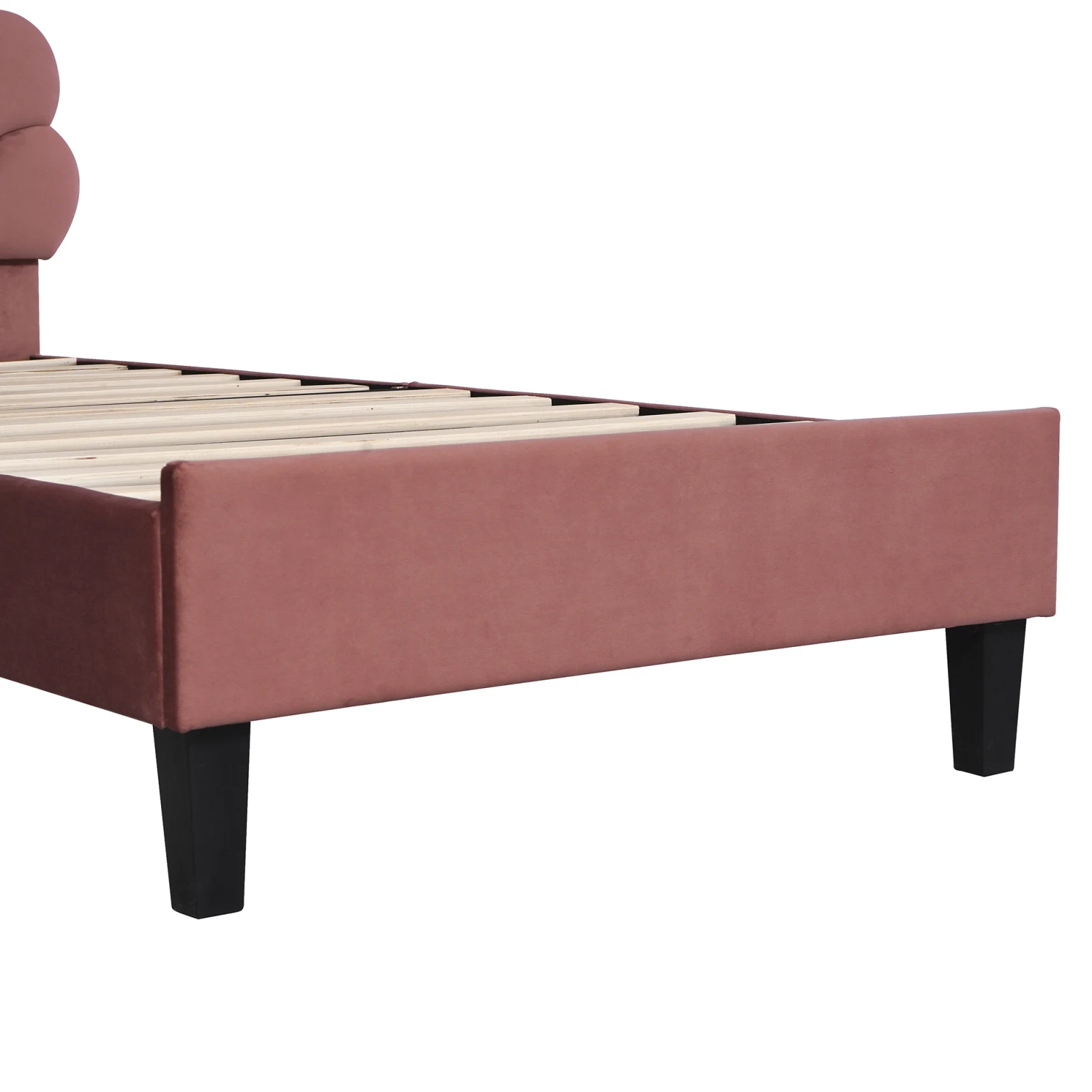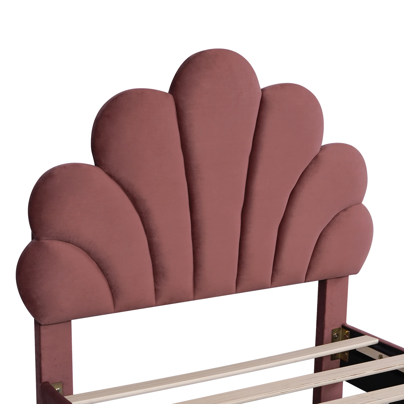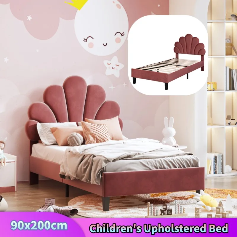 Детская мягкая кровать Comanlai 90×200 см, односпальная кровать, кровать для девочек, с решетчатым каркасом, деревянное изголовье цветочной формы, бархат