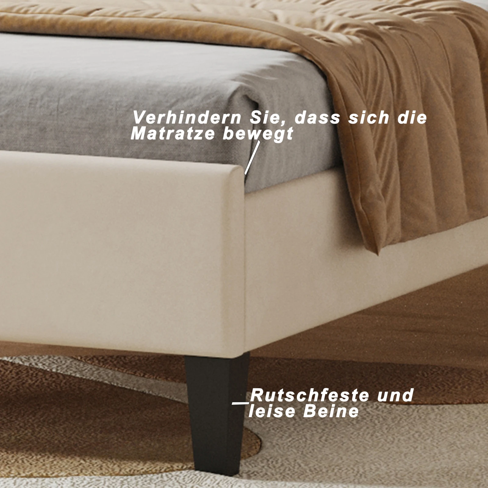 3.Не требуется коробчатая пружина: благодаря усиленным рейкам матрас (не входит в комплект) хорошо поддерживается, а вес вашего тела равномерно распределяется для комфортного сна.Наслаждайтесь комфортом и непревзойденной простотой использования, предлагаемой кроватью с мягкой обивкой 90 x 200.Изголовье в цветочном стиле дополнено удобной бархатной спинкой, создающей ощущение уюта.