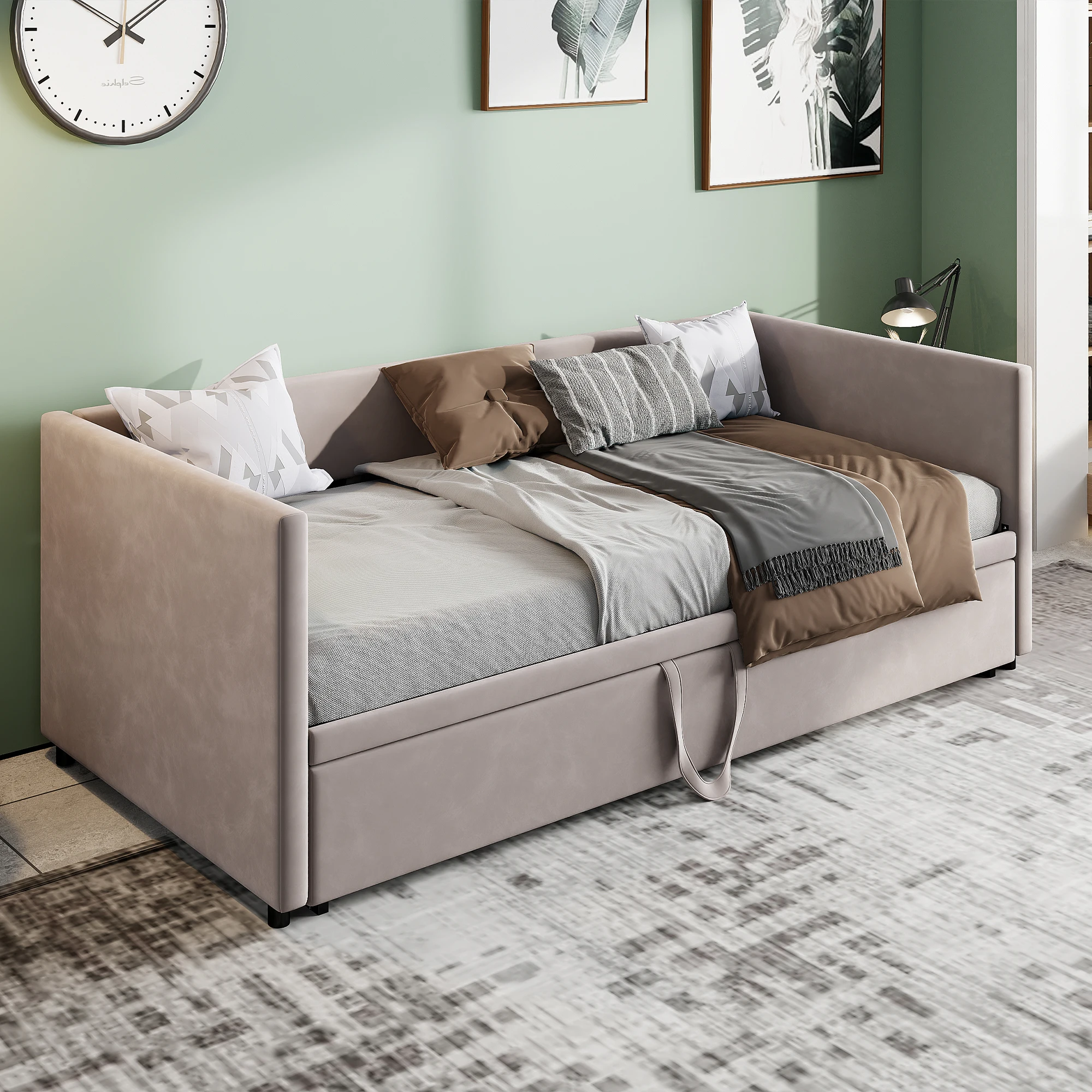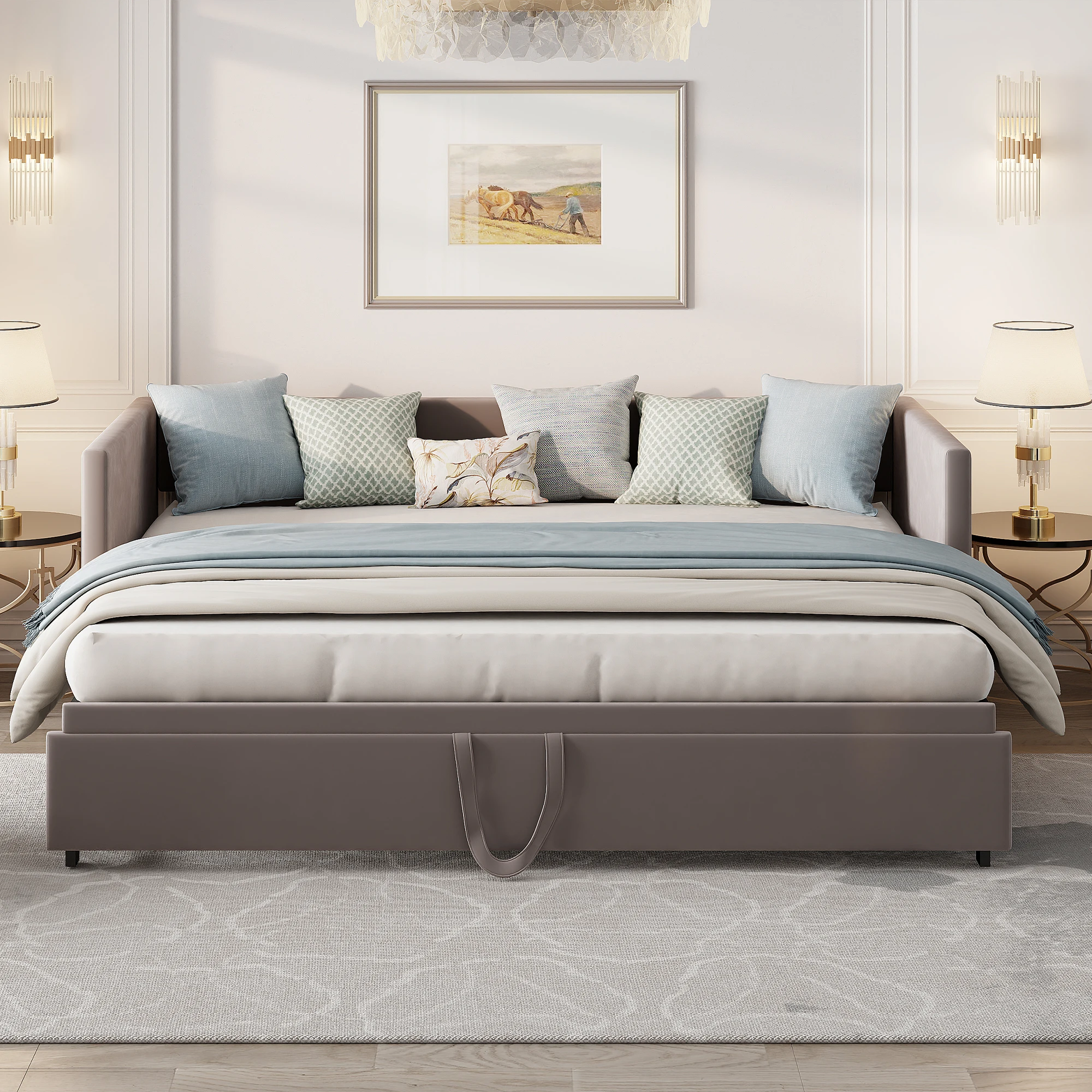 3. Компактный дизайн. Умывальную кровать в нижней части дивана-кровати можно легко вытащить или вставить, что экономит много места.Идеально подходит для небольших комнат или квартир и комнат для гостей.