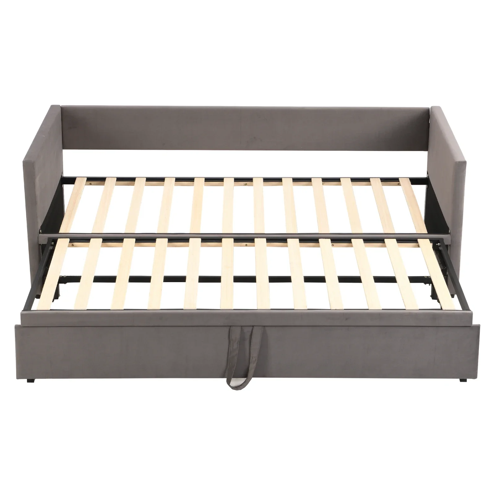 2. Выдвижной каркас кровати. В нижней части этого деревянного каркаса кровати имеется второй выдвижной каркас кровати.Два каркаса кровати можно соединить вместе, образуя размер 180 x 200 см, что позволяет легко создать односпальную или двуспальную кровать.