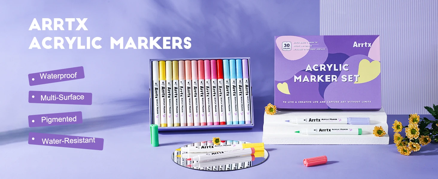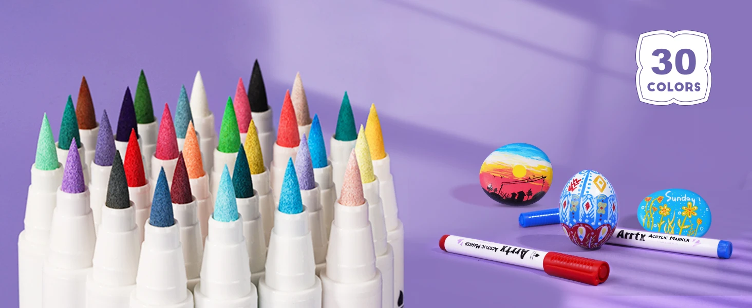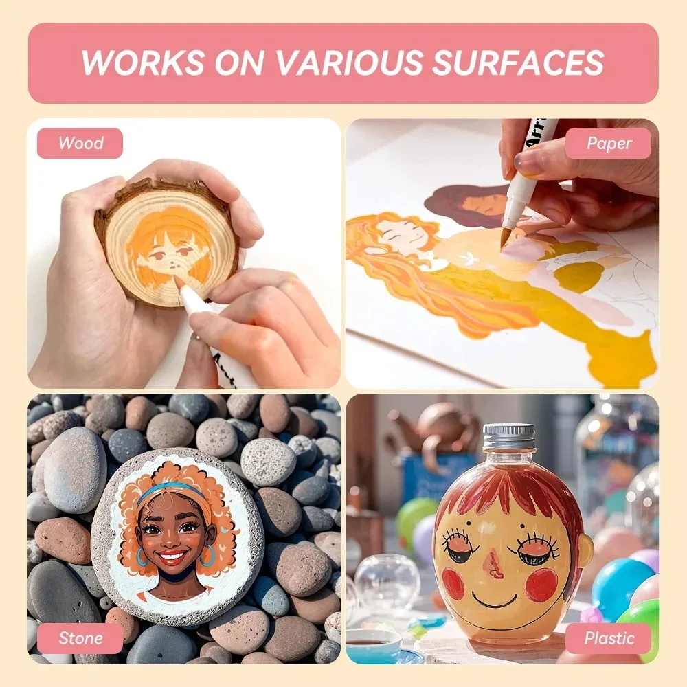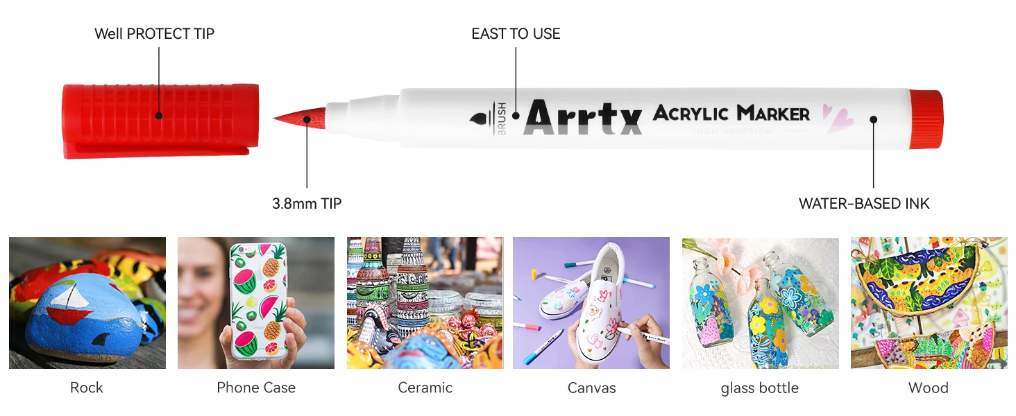 ❤【Подходит для нескольких поверхностей】 Набор акриловых маркеров Arrtx обеспечивает гладкие чернила на водной основе и превосходное покрытие различных поверхностей, подходит для бумаги, картона, металла, наскальной живописи, дерева, пластика, холста, ткани, камня, пасхальных яиц, пасхальных украшений. , металл, рождественские украшения, живопись тыквы на Хэллоуин, каллиграфия, альбом для вырезок, надпись киДавайте выразить воображение!