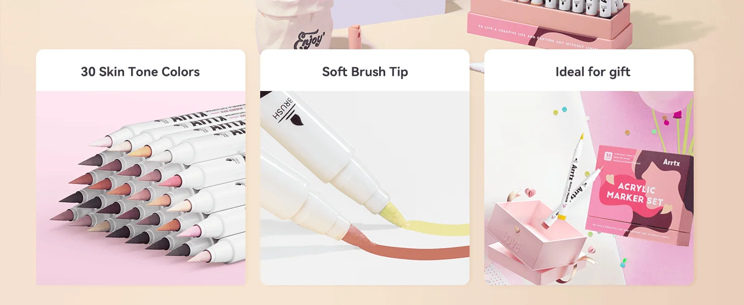 Доставка из ЕС Arrtx, 30 цветов, акриловые ручки цвета кожи, маркеры для рисования тона кожи, ручки для рисования, наконечник кисти для рисования