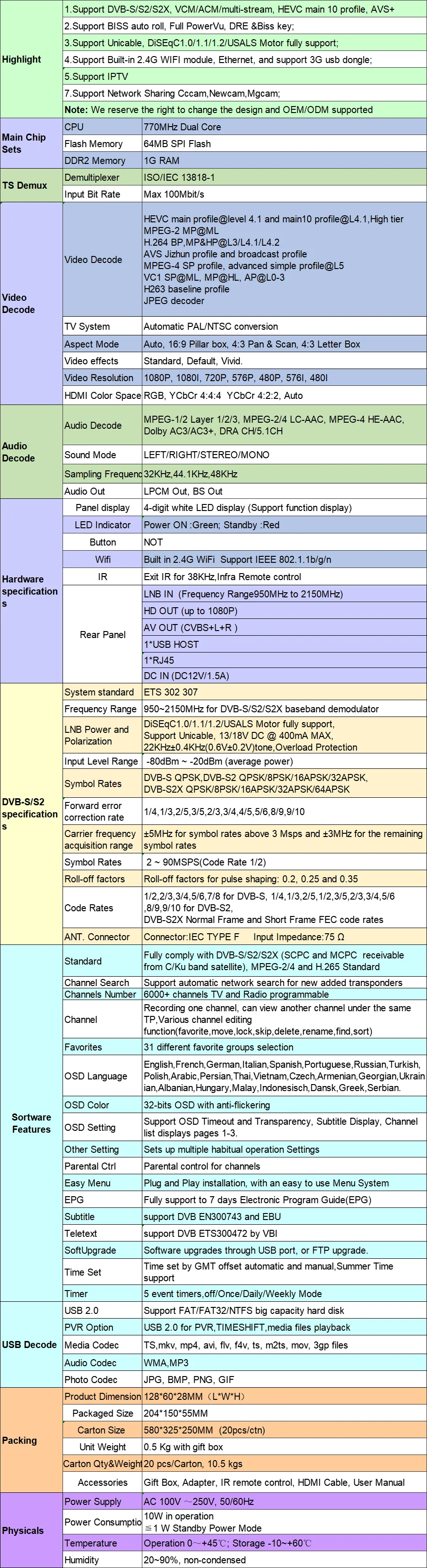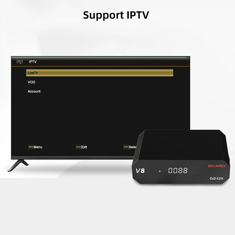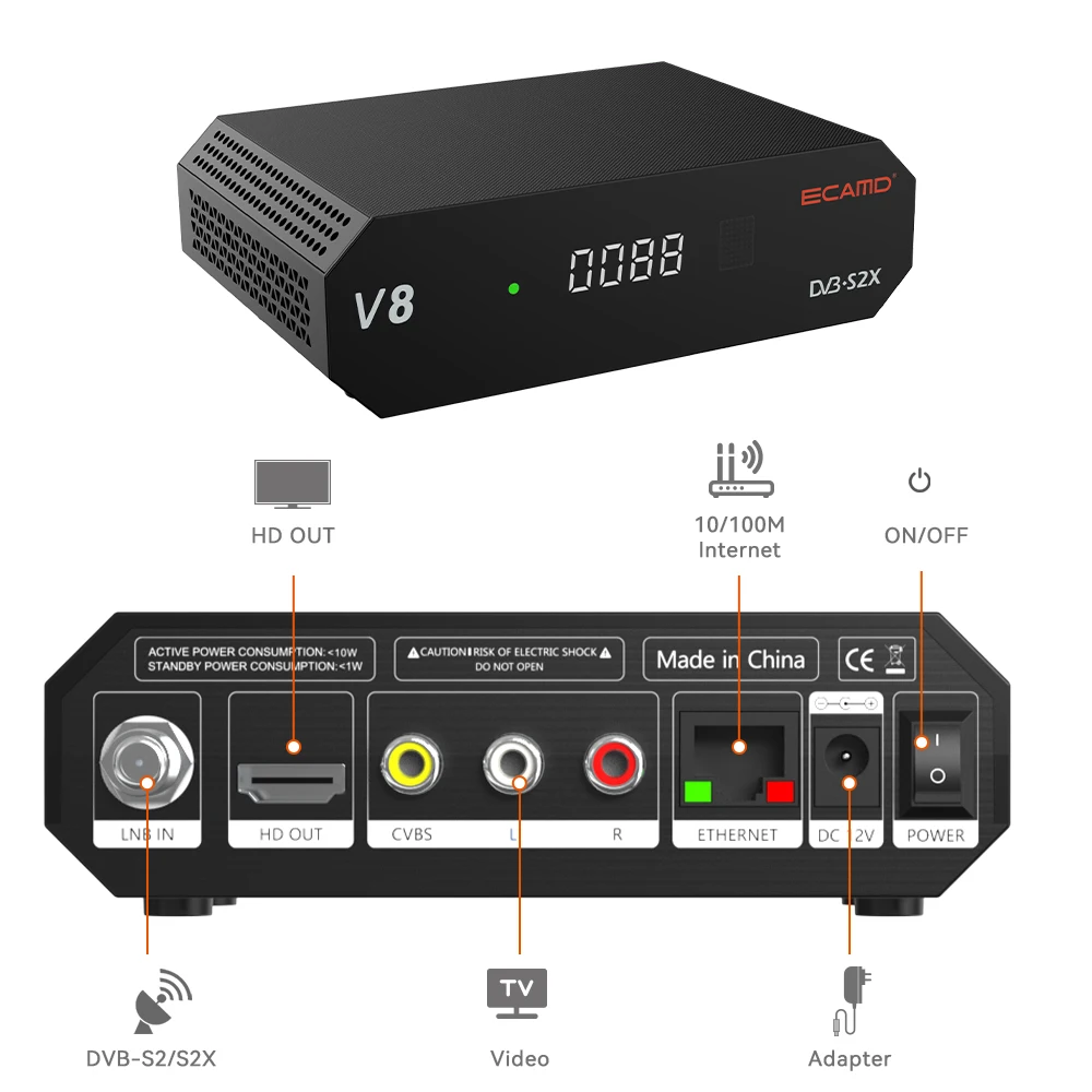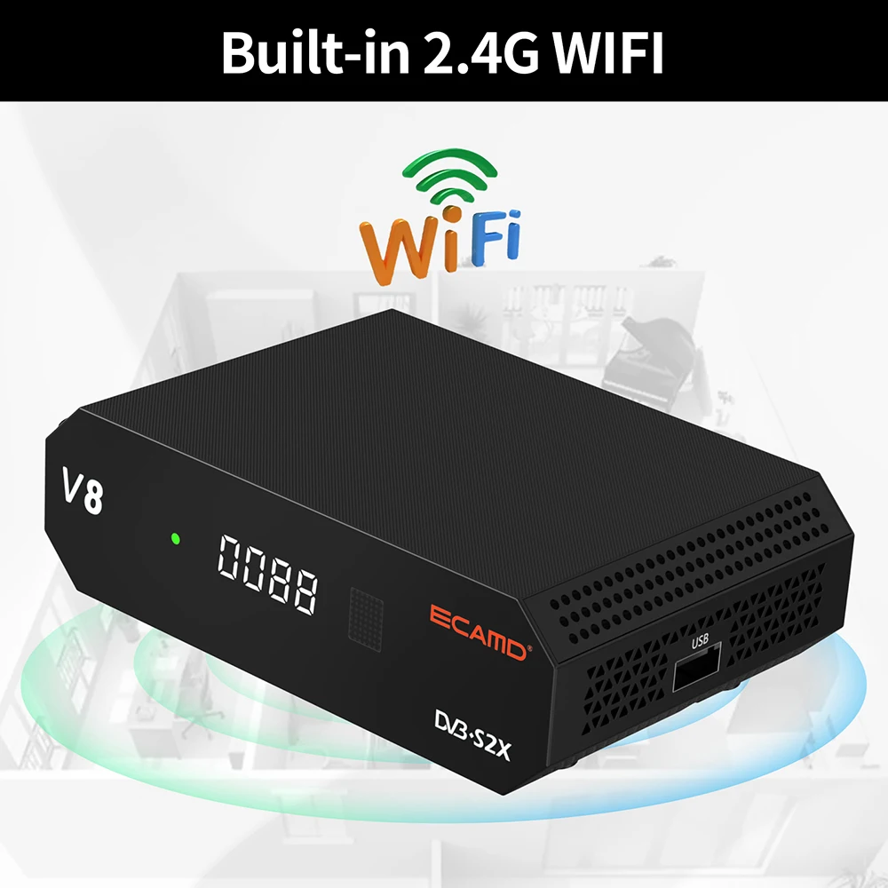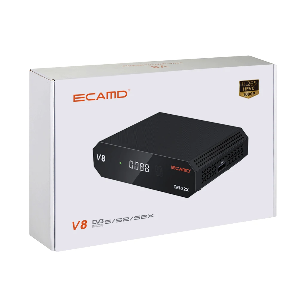 ECAMD V8 Приемник спутникового телевидения Cccam Newcam Mgcam DVB-S/S2/S2X 1080P HD 2,4G WIFI HEVC ТВ-декодер Бесплатная ECAMD H.165 GTMEDIA V8X