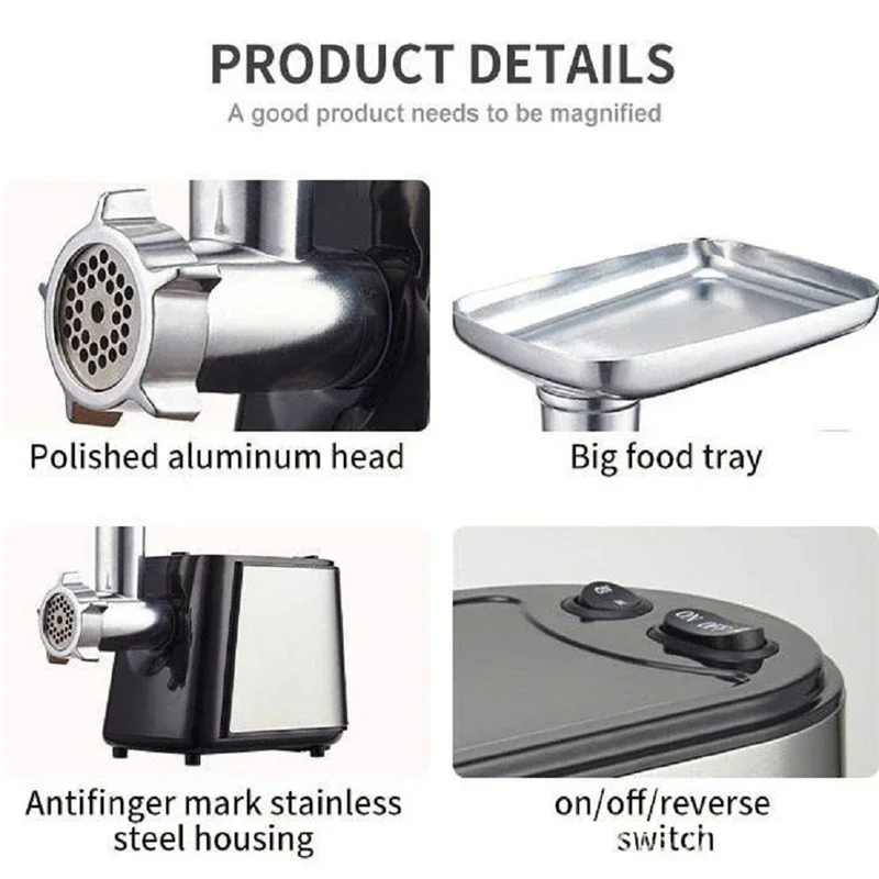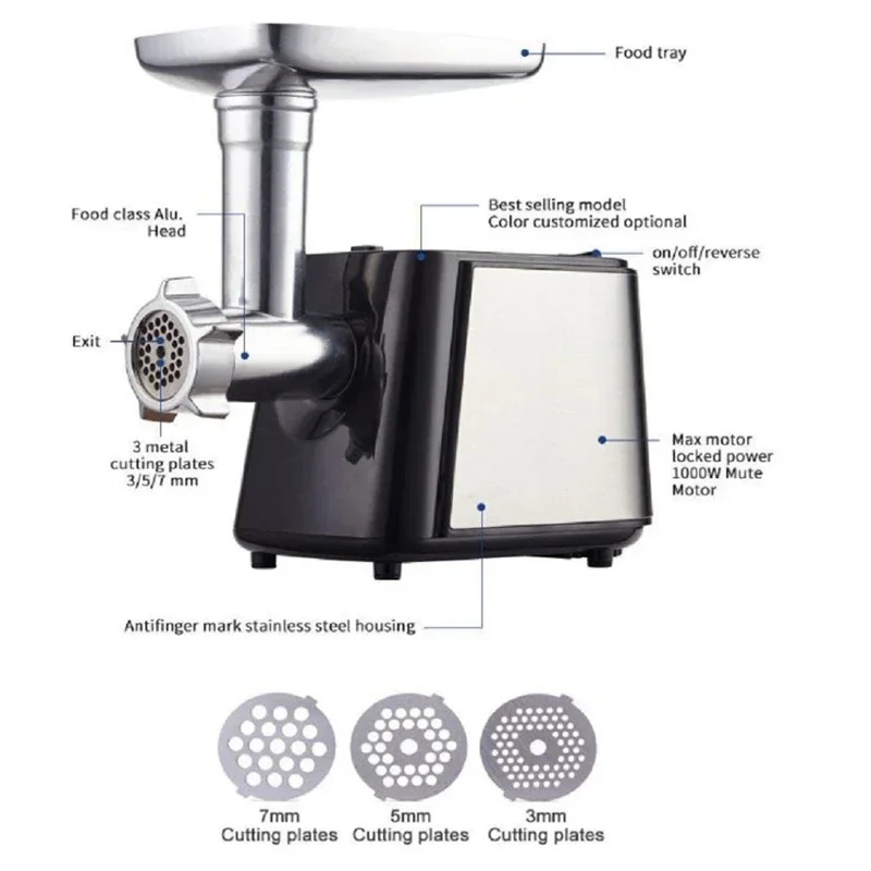 Электрическая мясорубка из нержавеющей стали, 1000 Вт, многофункциональная домашняя колбаса, мясорубка, кухонный комбайн, электрическая овощерезка