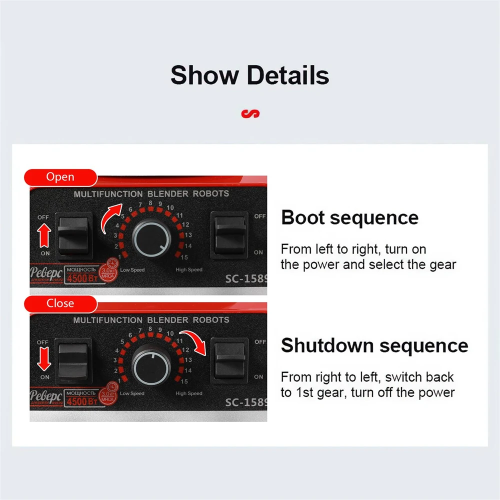 【Что вы получите】 (1) Основание двигателя мощностью 2000 Вт, (1) Контейнер для смешивания 2 л, (1) Миксер, (1) Руководство по эксплуатации.